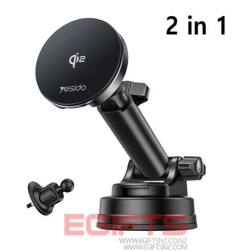 YESIDO QI2 Magnetic Car Phone Holder Magsafe 2in1 Wireless Charging DS30