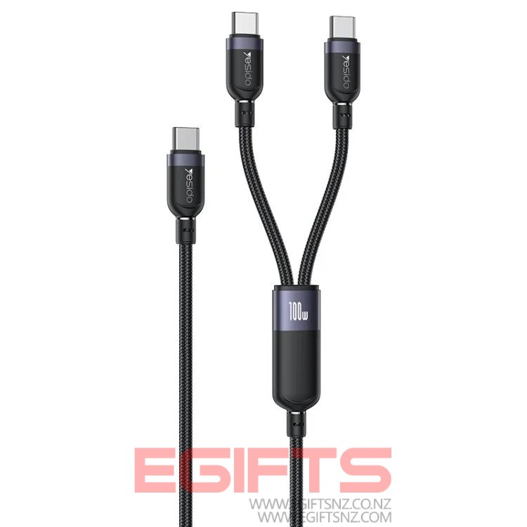 Yesido CA92 100W 5A USB-C / Type-C to Dual Type-C 2 in 1 Charging Cable