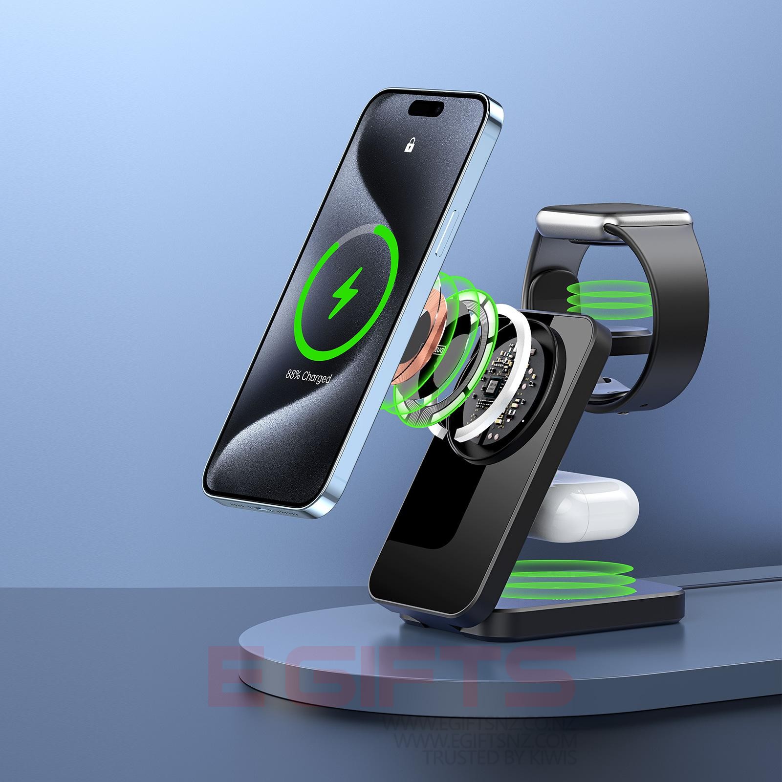 DUZZONA Foldable 3-in-1 Magnetic Wireless Charger Stand