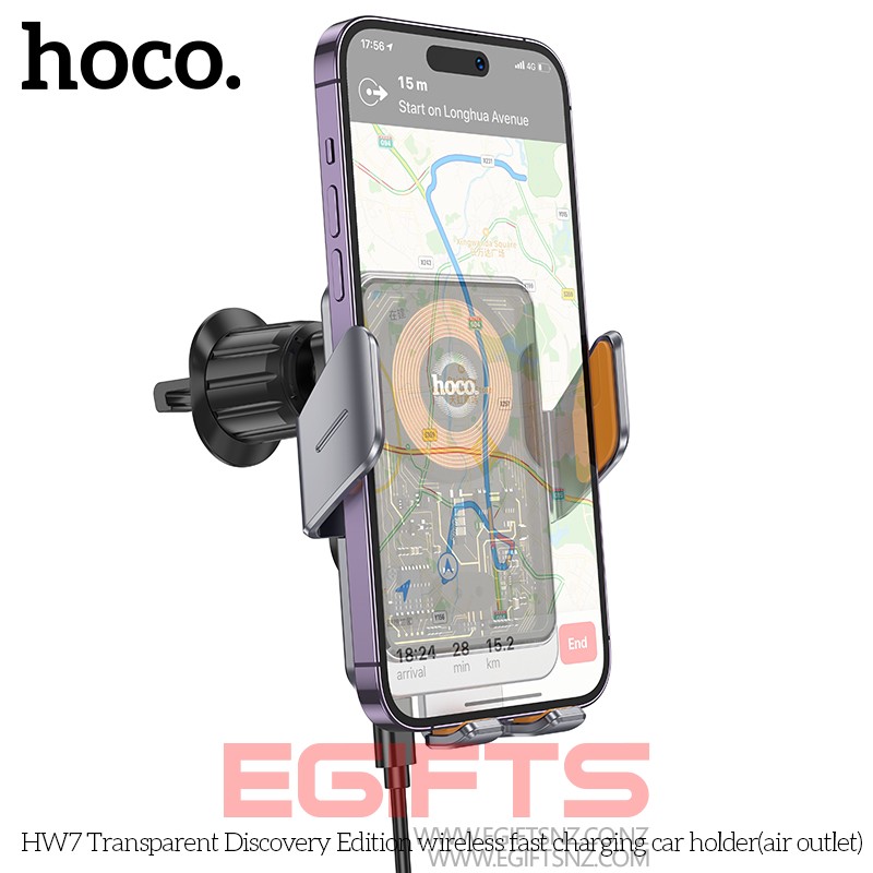 Hoco HW1 Air vent Wireless Charging Car Phone Holder With hook