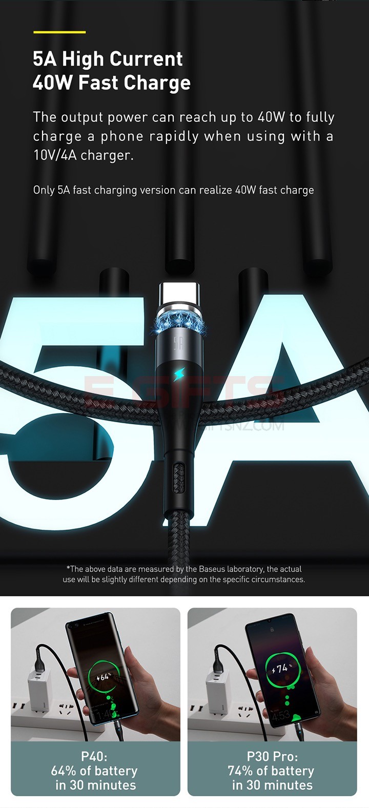 The thickened cores increase the conduction area and easily carry 5A current. - 5A High Current 40W Fast Charge