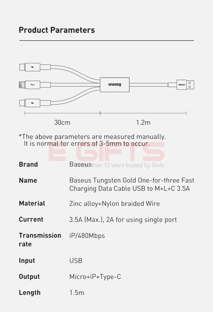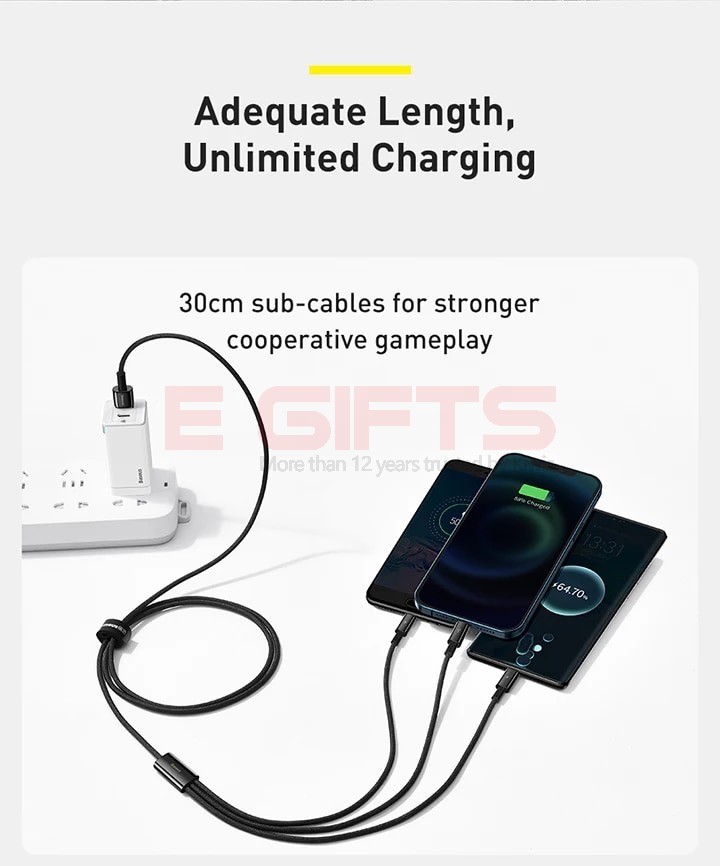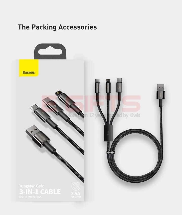 3.5A Zinc Alloy Fast Charging Tungsten Gold One-for-three Fast Charging Data Cable