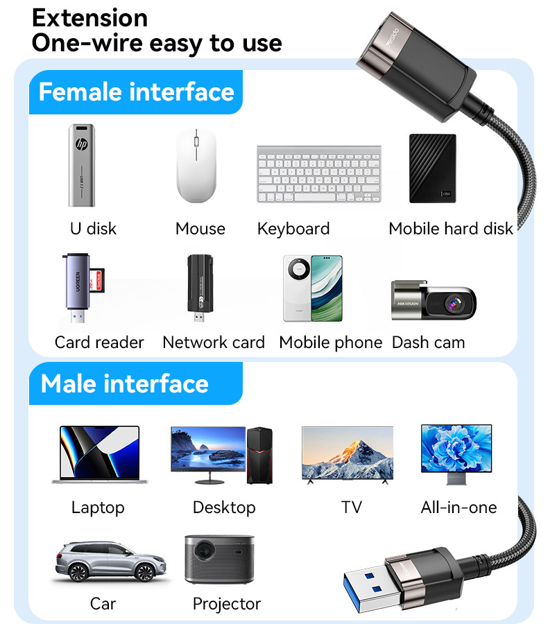 YESIDO GS26 USB 2.0 EXTENSION CABLE 1.5M