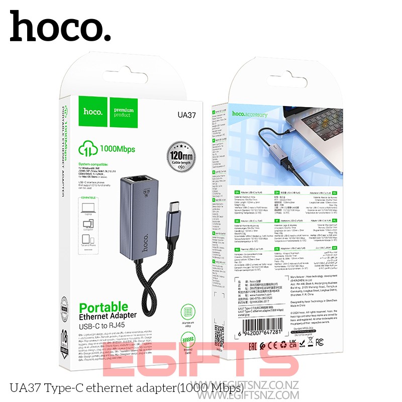 HOCO Type C Wired 1000 Mbps Ethernet Adapter UA37