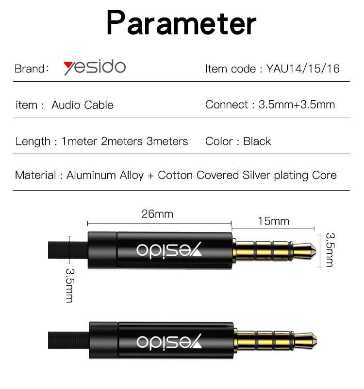 YESIDO AUX Nylon Braided 3.5Mm To 3.5Mm CABLE