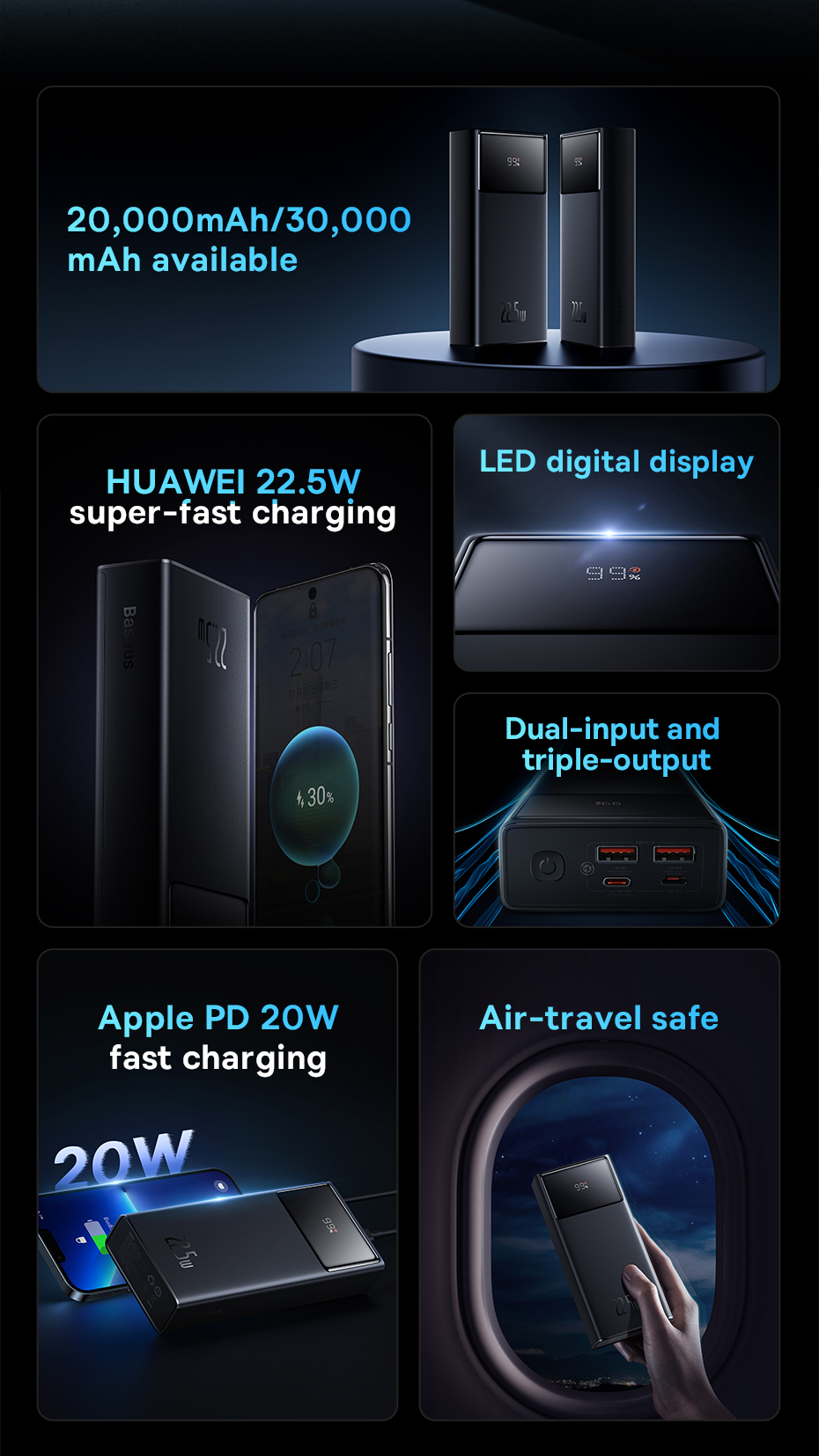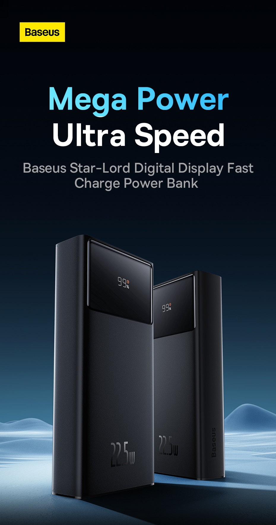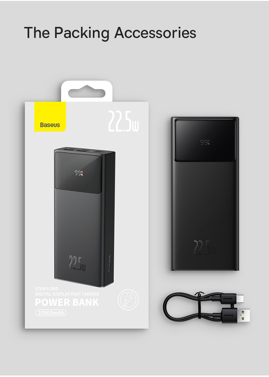 - Charge up to 3 devices at the same time with a powerbank from Baseus! Star-Lord features a high power of 22.5 watts and extraordinary speed. The battery capacity is 20000 mAh. You can take the device with you anywhere – even on a plane! Star-Lord supports fast charging technology and its use is fully safe thanks to multi-level protection.