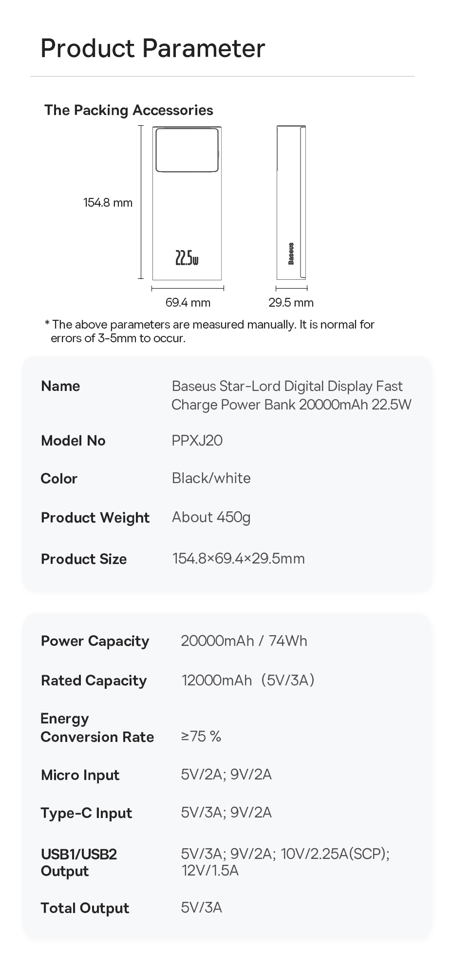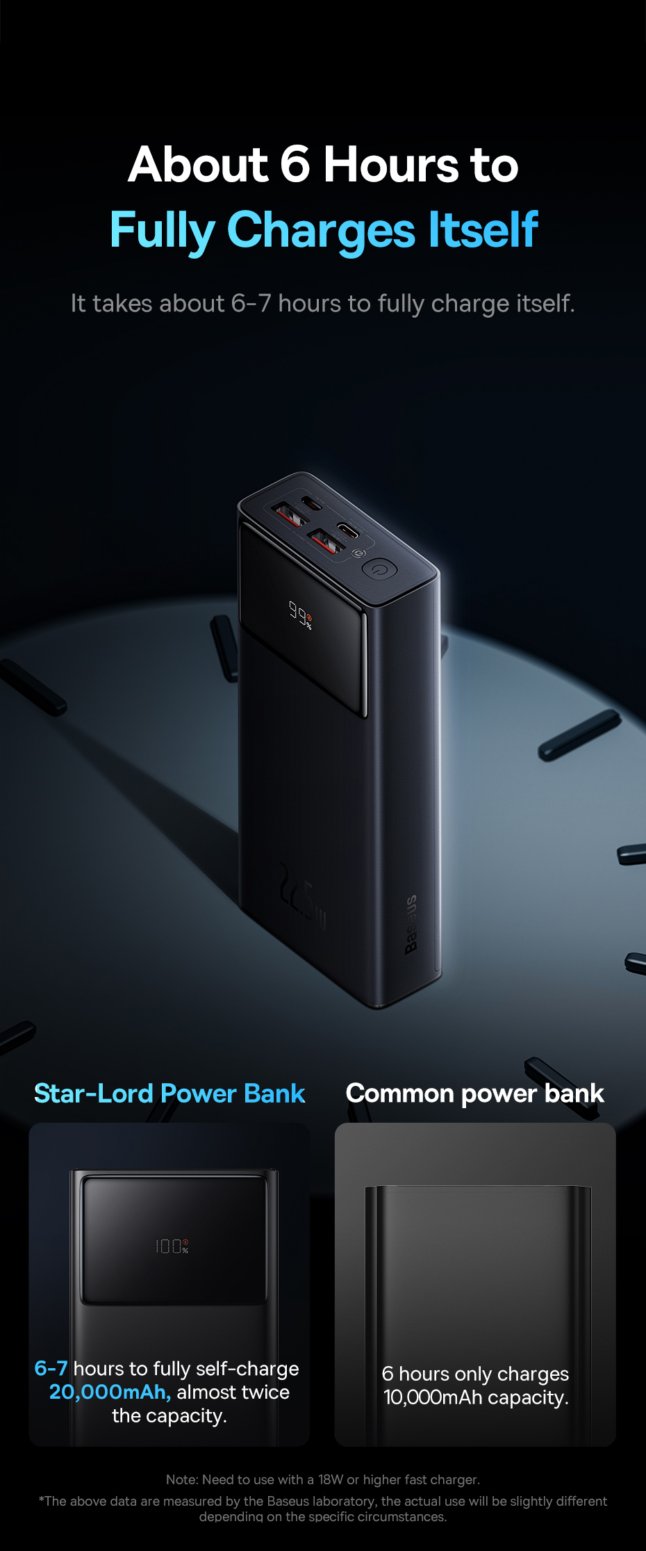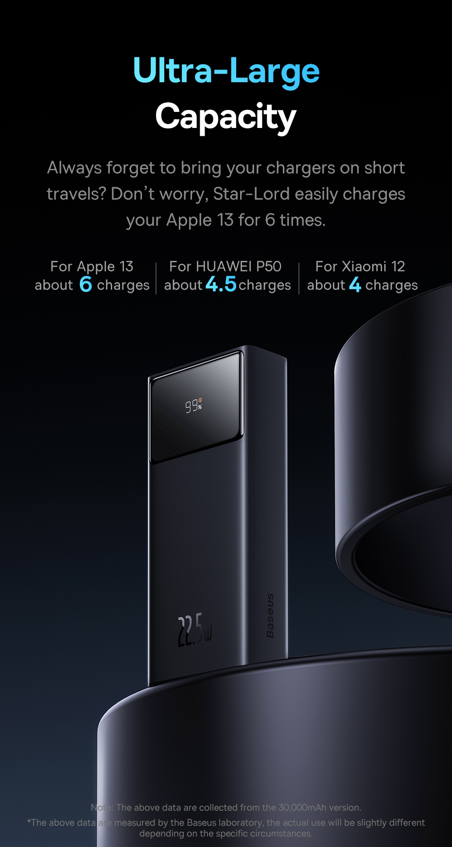 - Charge up to 3 devices at the same time with a powerbank from Baseus! Star-Lord features a high power of 22.5 watts and extraordinary speed. The battery capacity is 20000 mAh. You can take the device with you anywhere – even on a plane! Star-Lord supports fast charging technology and its use is fully safe thanks to multi-level protection.