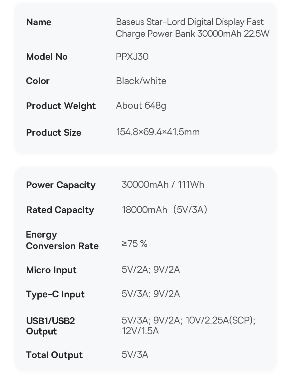 Baseus Star-Lord Digital Display Fast Charge Power Bank 30000mAh