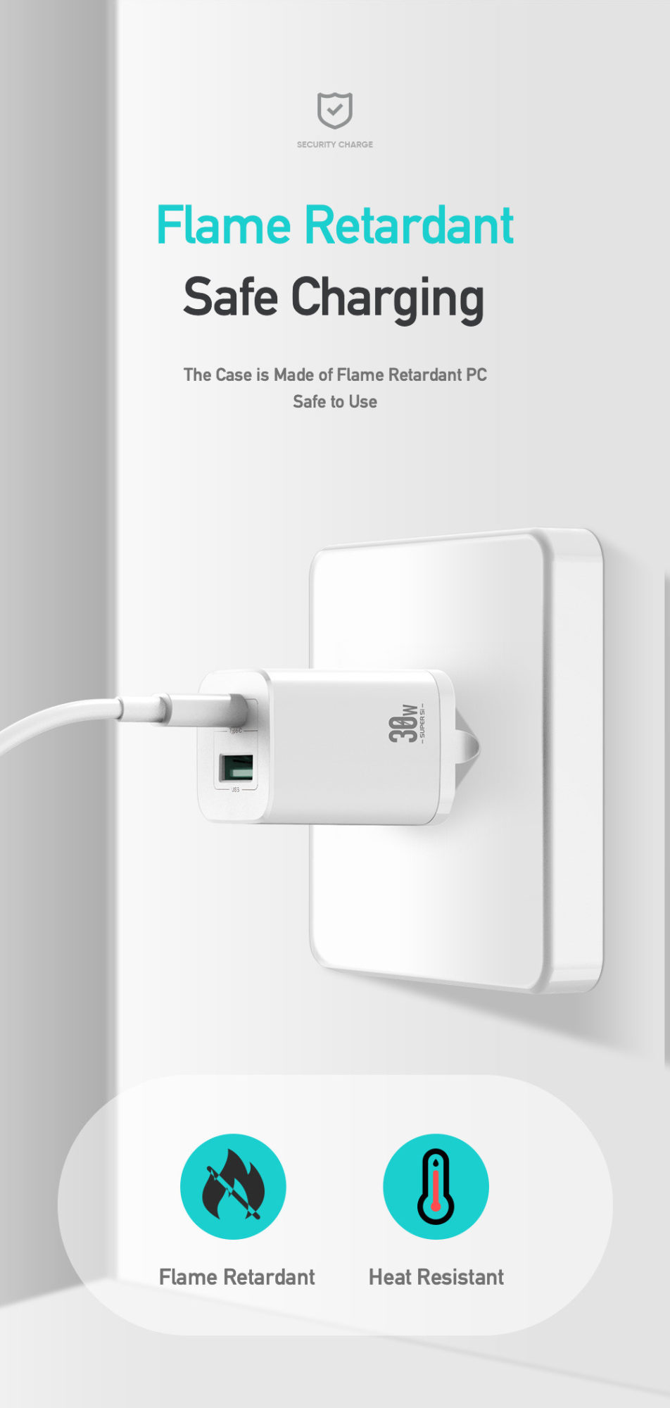 • 30W C TYPE Single Port Fast Charger