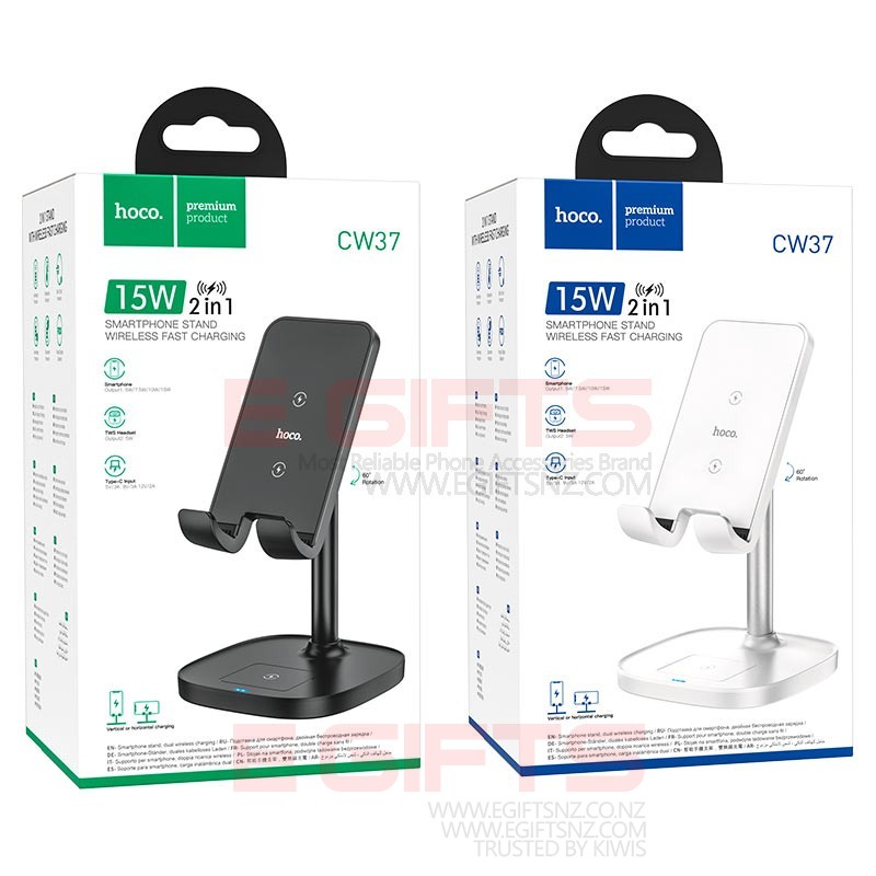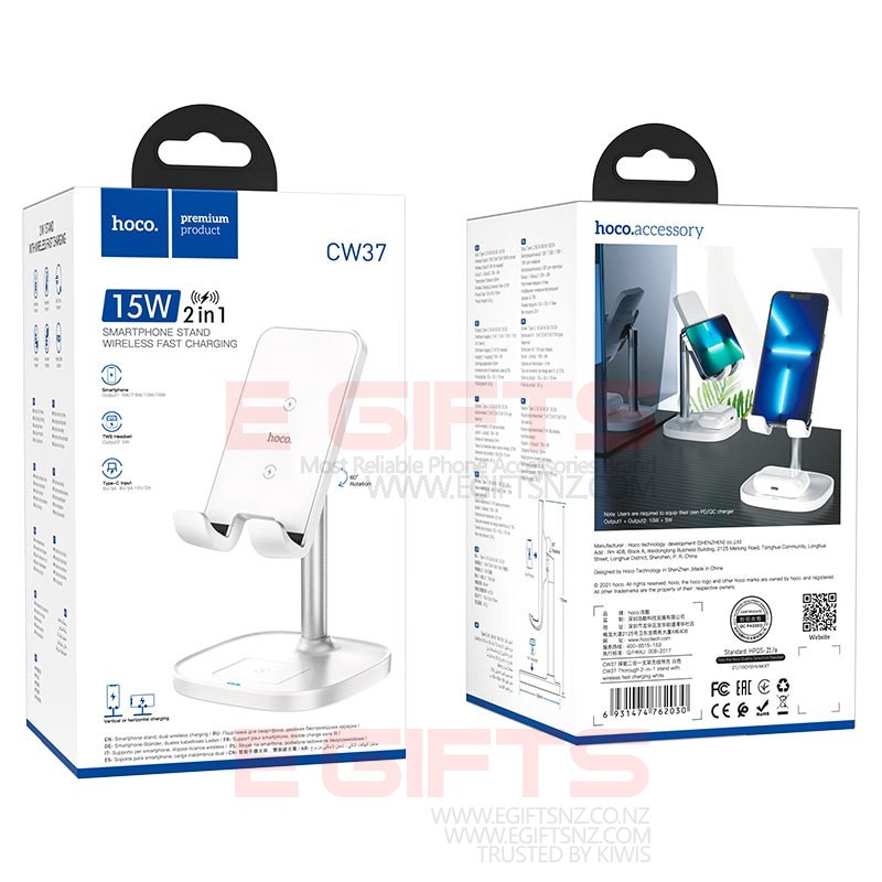 CW37 Thorough, 2-in-1 tabletop fast wireless charging holder, 5W / 7.5W / 10W / 15W for phones and TWS headsets
