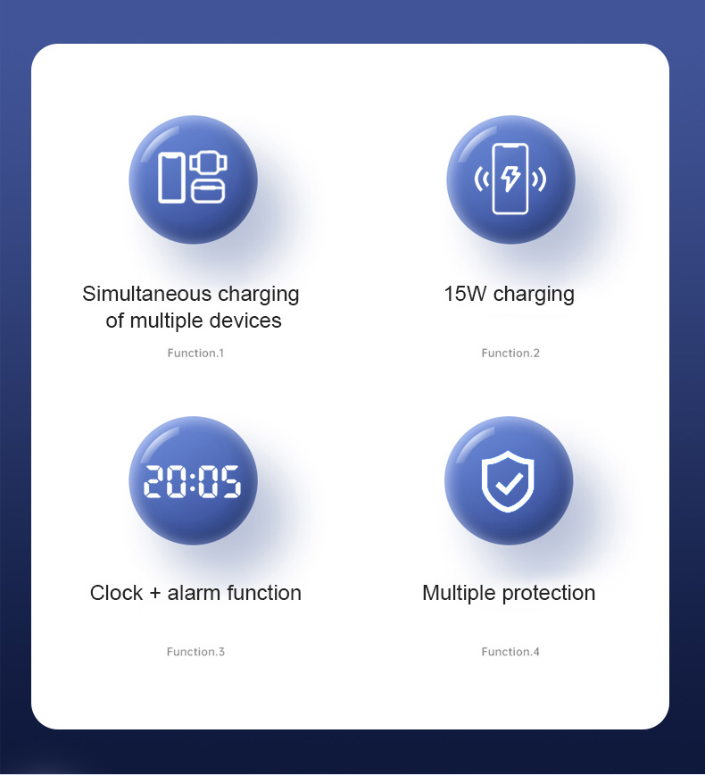 - Digital Clock & Wireless Charging Docking】Multifunctional wireless charging station with digital clock to adjust and check the time. Built-in battery, it can display the time even when the charger stand is not plugged in.The brightness of the clock can be adjusted and turn off, and it will not disturb your sweet sleep. With this Charger, you don’t need to keep it alone on your desk / Carry the clock.(No alarm function, just check the time❗❗❗)