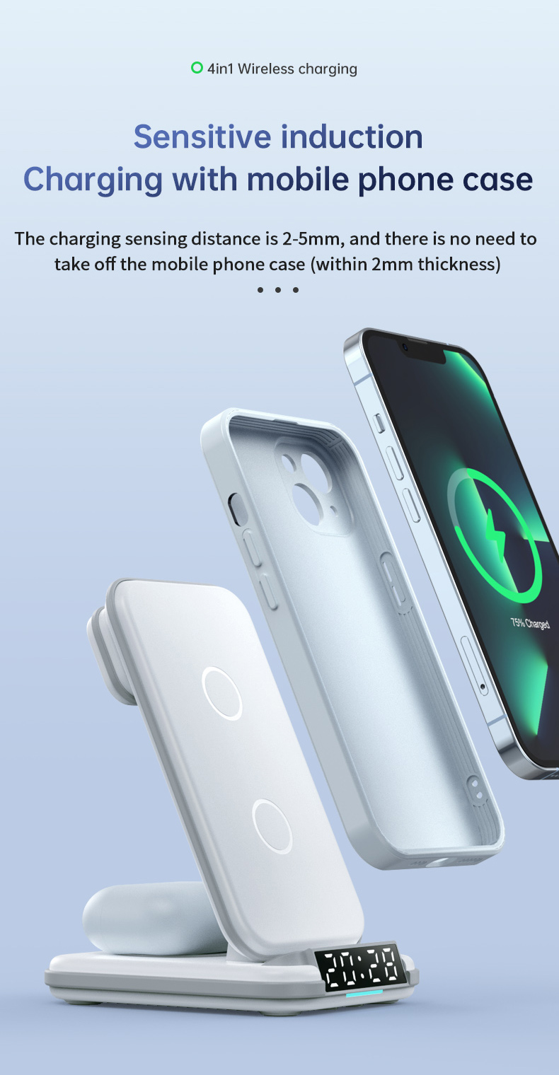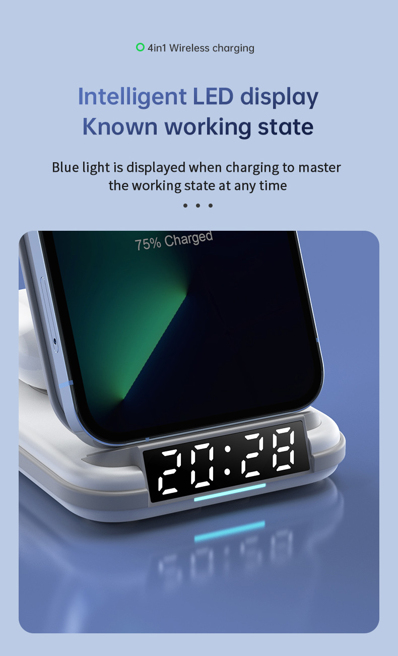- Digital Clock & Wireless Charging Docking】Multifunctional wireless charging station with digital clock to adjust and check the time. Built-in battery, it can display the time even when the charger stand is not plugged in.The brightness of the clock can be adjusted and turn off, and it will not disturb your sweet sleep. With this Charger, you don’t need to keep it alone on your desk / Carry the clock.(No alarm function, just check the time❗❗❗)