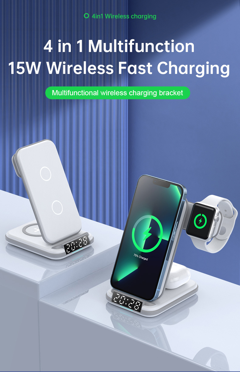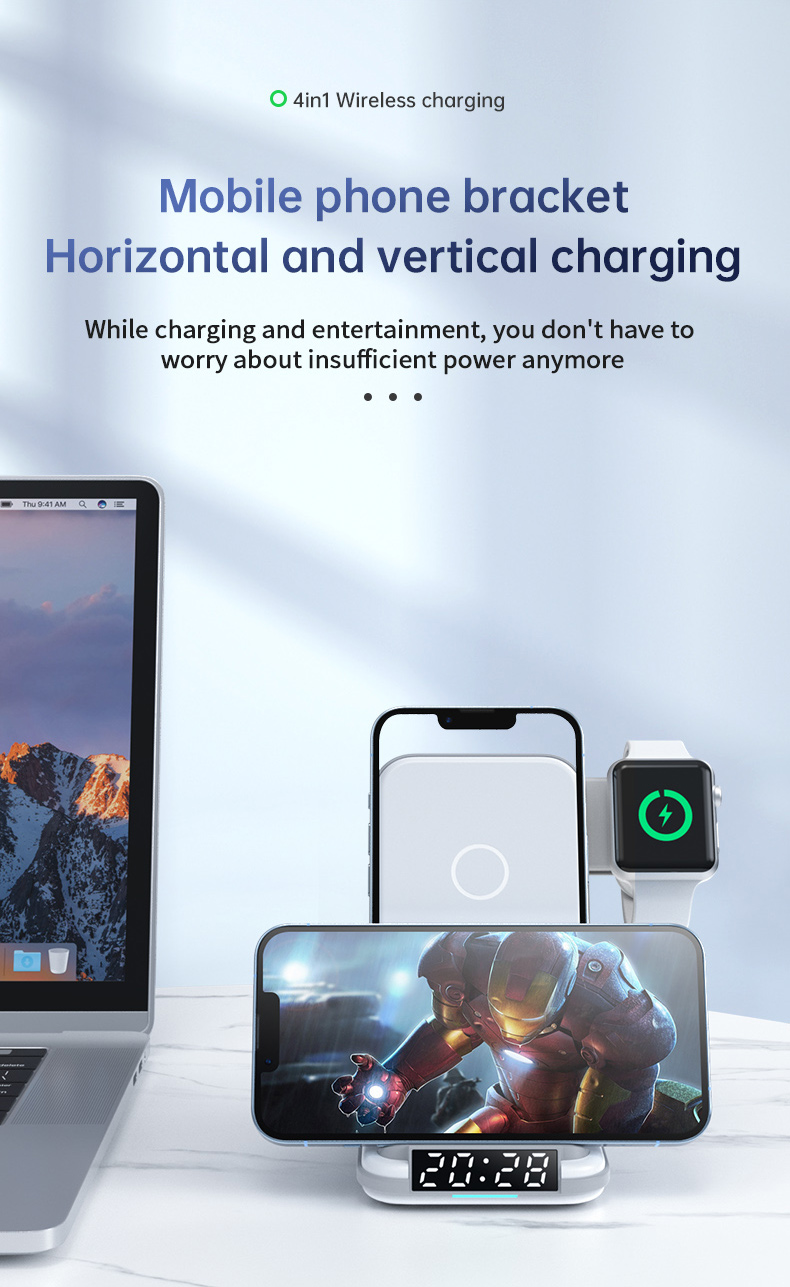 3 in 1 Wireless Charging Station AirPods iWatch iPhone with Clock