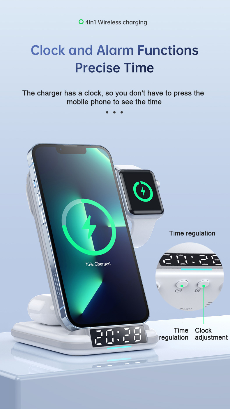 - 【Safe & Fast Charging】Lopnord upgraded 3-in-1 wireless charging with clock designed for samsung users, wireless charger with the latest digital clock and charger combination. Charge your phone/Samsung watch/wireless earbuds at the same time,The enclosed Quick Charge 3.0 adapter provides stable output to the wireless charger, no need for multiple charging cables, keep your desktop neat & tidy and give you a true wireless experience!