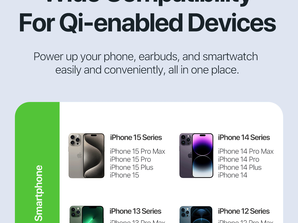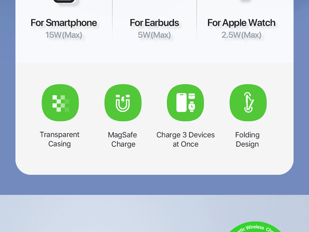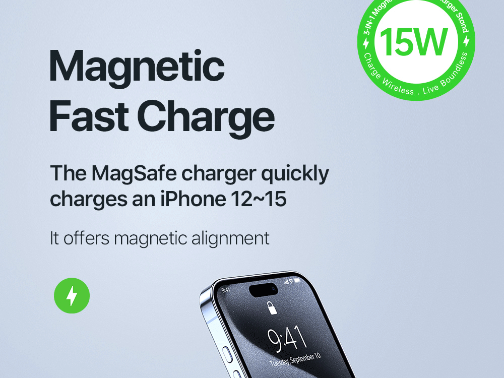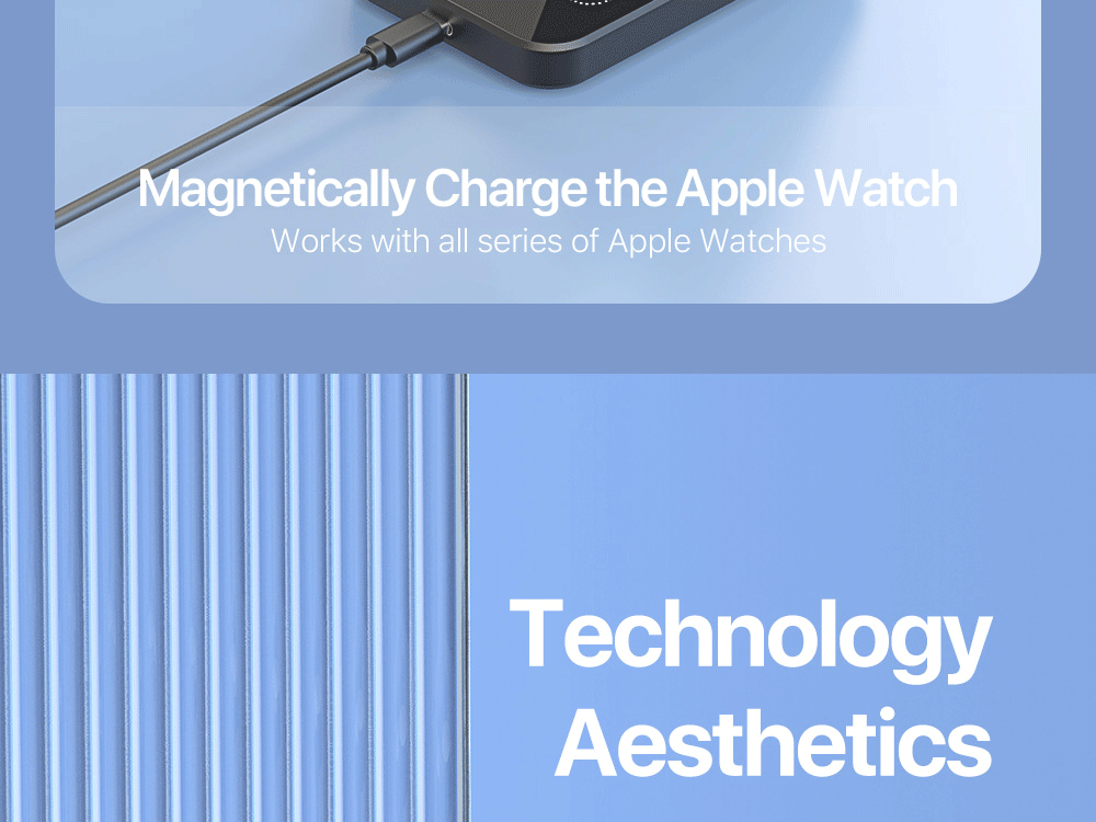 3-in-1 Magnetic Wireless Charger: It can charge your iPhone, Apple Watch and AirPods at the same time. The magnets in the charger can be precisely aligned with the magnets in the iPhone/Apple Watch enabling fast and stable wireless charging. The magnetic charging function applies to iPhone 12/13/14/15 series and all series of Apple Watch.