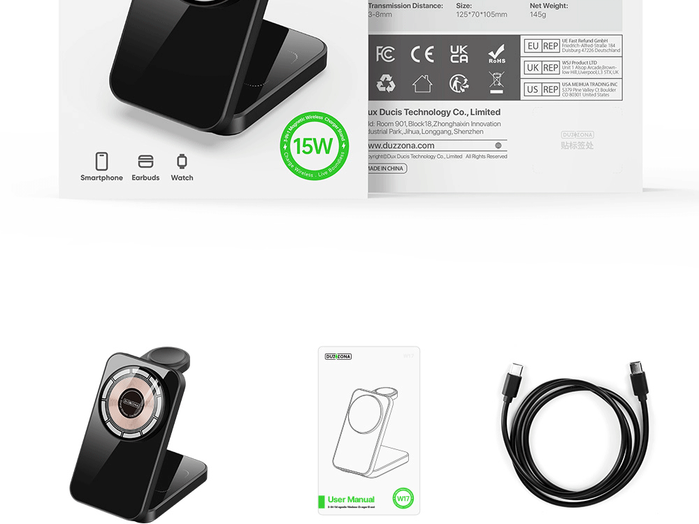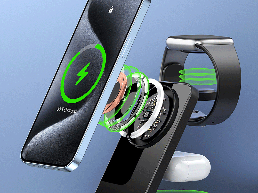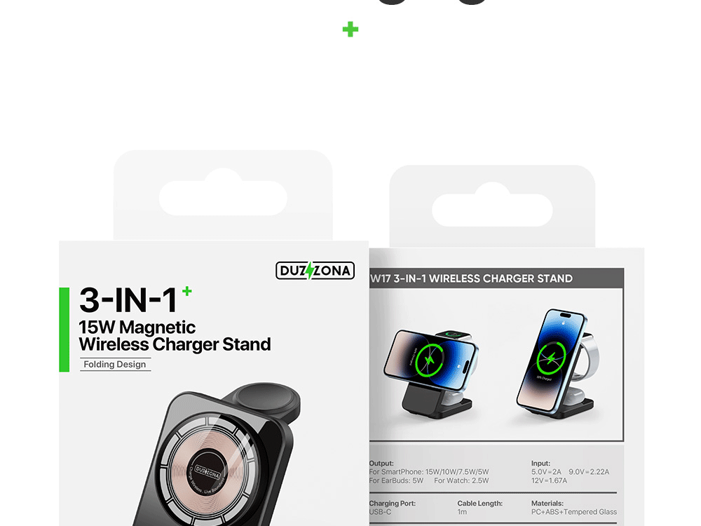 DUZZONA Foldable 3-in-1 Magnetic Wireless Charger Stand