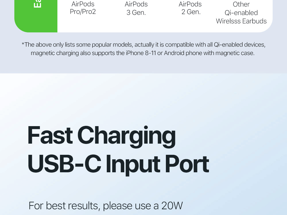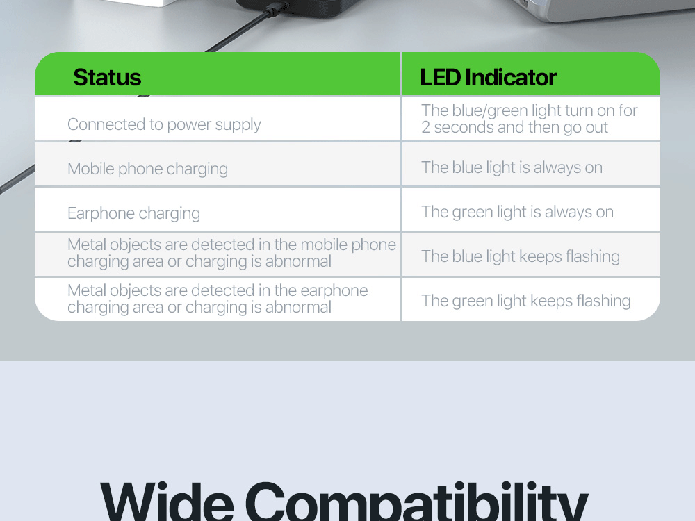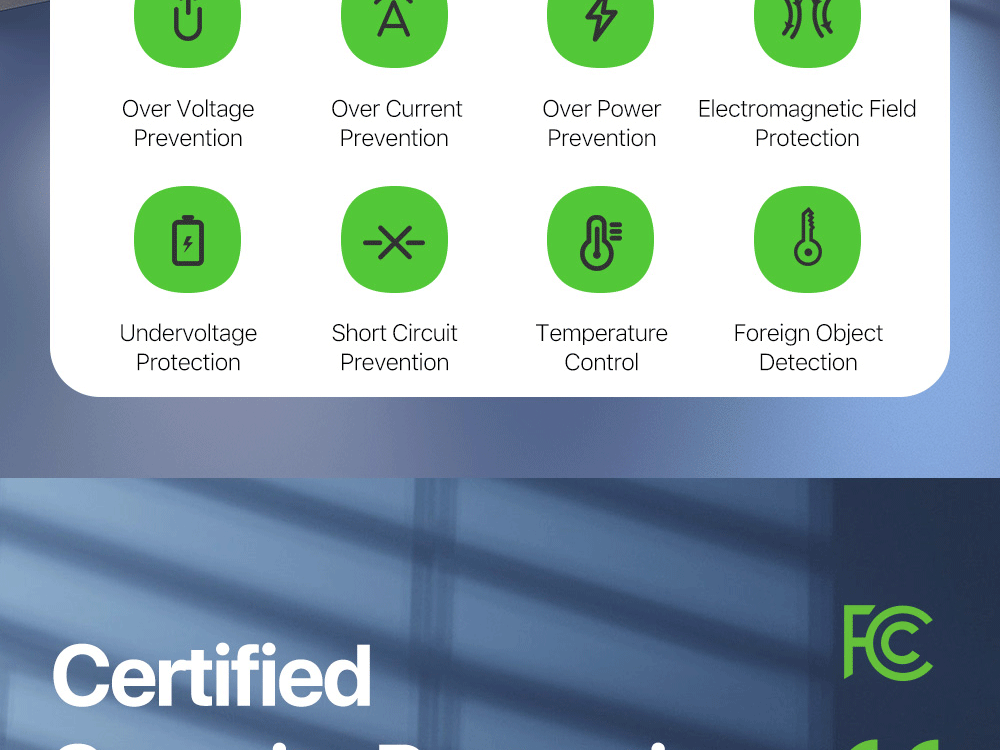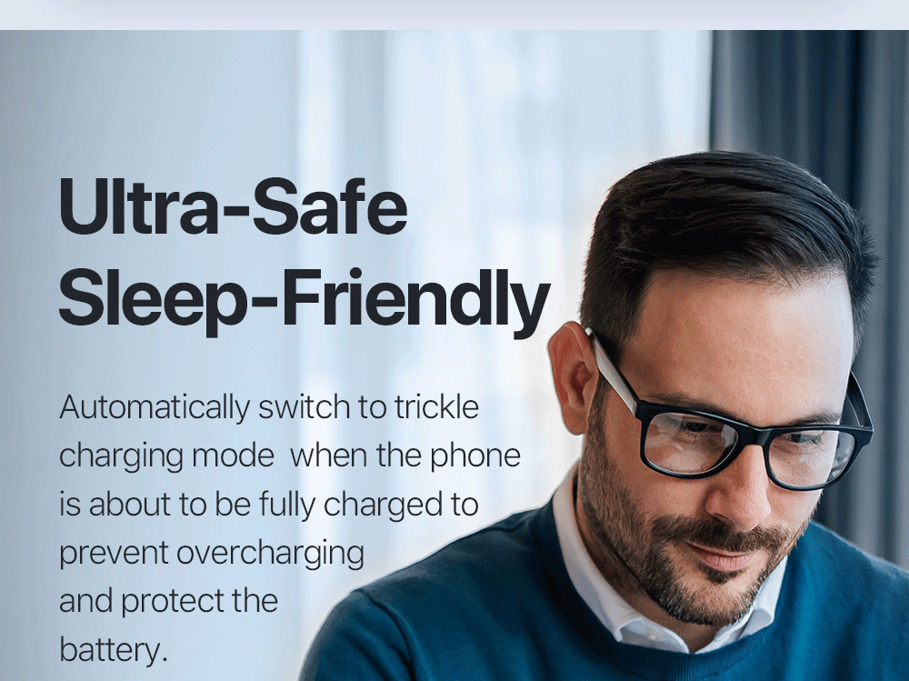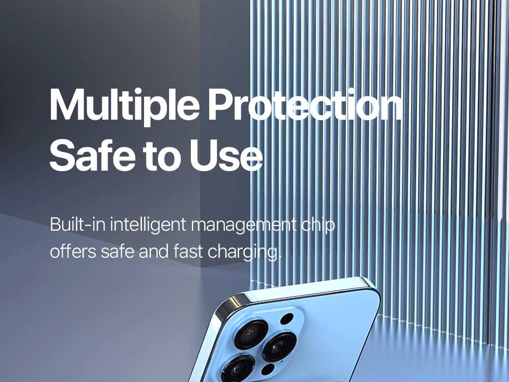 Safe Charge: The built-in safety chip can prevent the charger from getting hot during the charging process. If the working current, voltage is too high, a short circuit occurs, or metal foreign objects are detected on the charger, the charging will automatically stop immediately. When the device is fully charged, the charger automatically stops working.