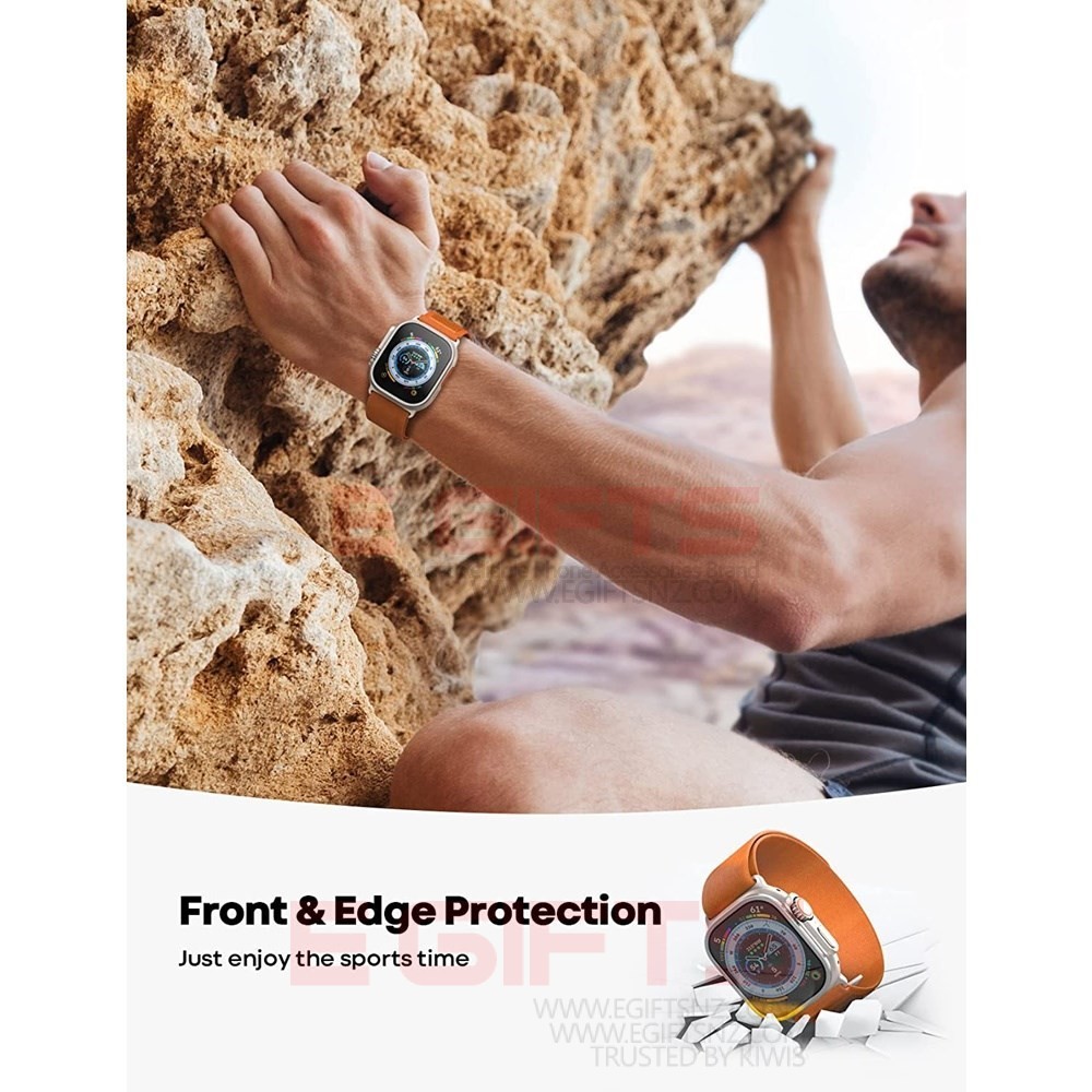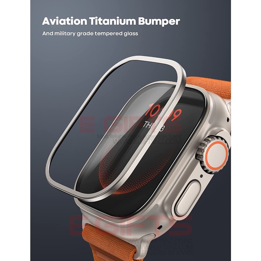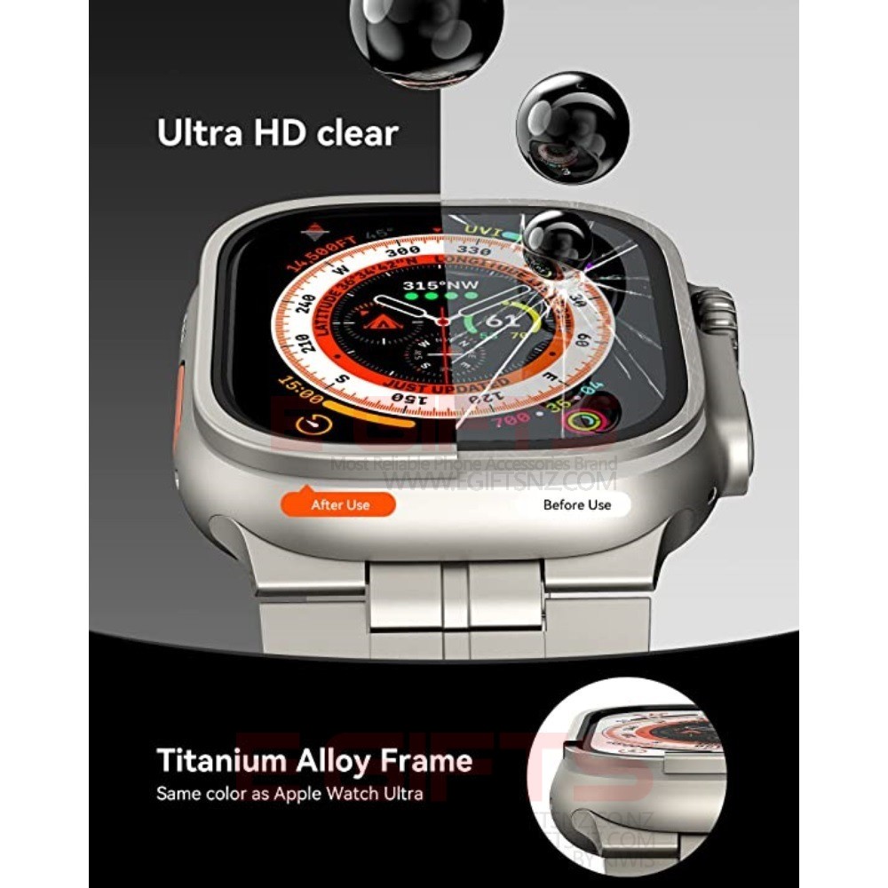 • 【2 in 1 All-round Protection & Original Beauty】 Built-in 9H tempered glass screen protector and titanium alloy frame, protects your apple watch screen from dust, bumps, shatter, scratches and accidental drops in 360 degrees, protect the iwatch from everyday life. Made of the same titanium material and manufacturing process as the Apple watch ultra, allows you to enjoy the original aesthetics of the Ultra Apple Watch 49mm while protecting it.