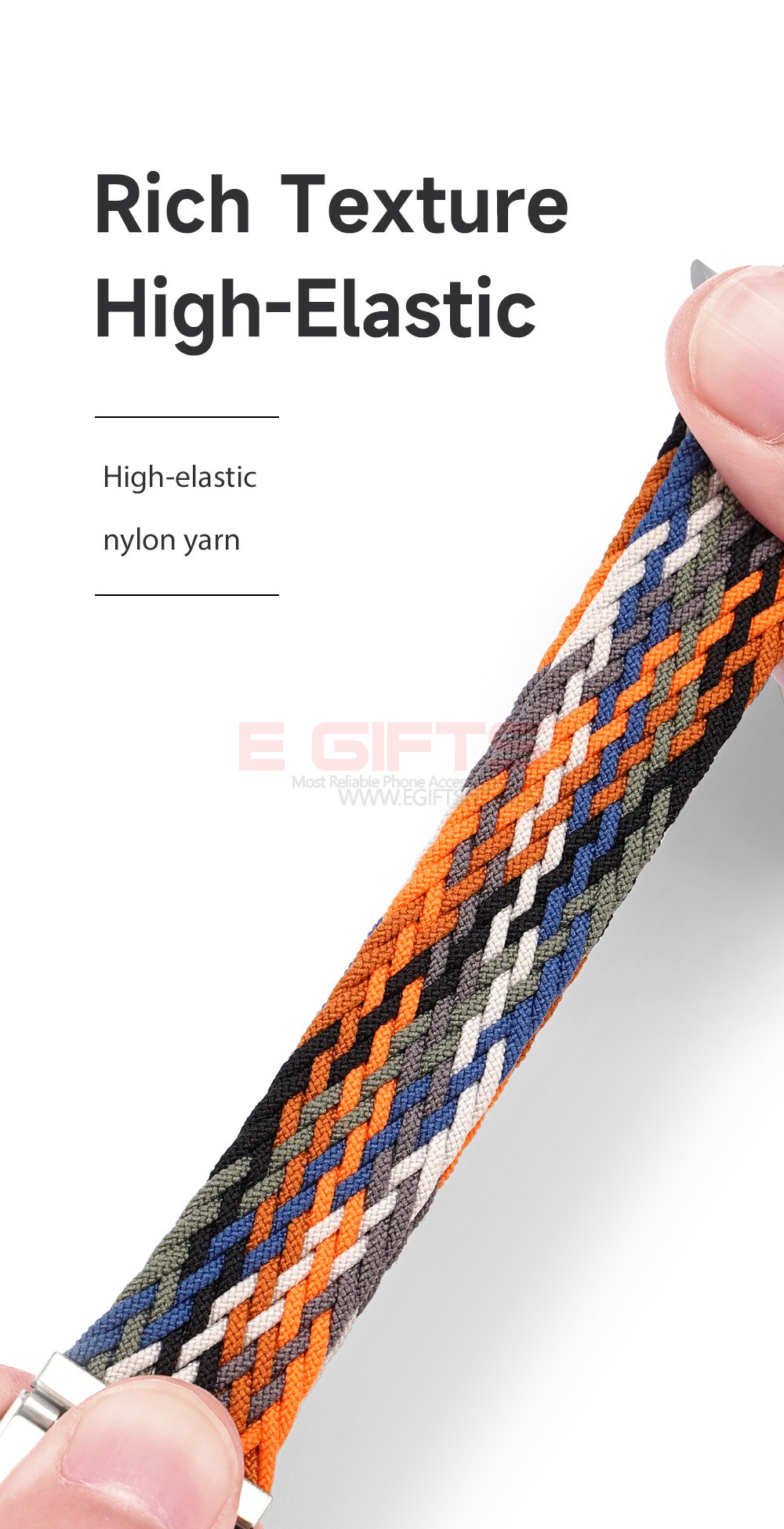 Fits all Apple Watch Series, it’s made of high-elastic nylon yarn with rich texture.