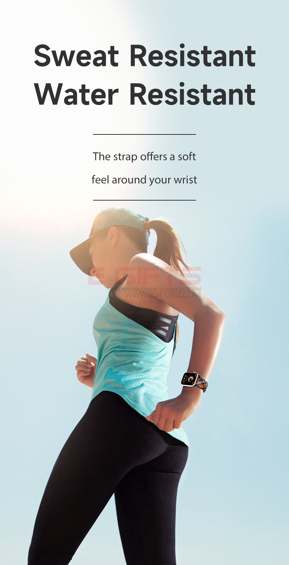 Water resistant and sweat resistant, it’s ultra-comfortable and easy to slip on/off.