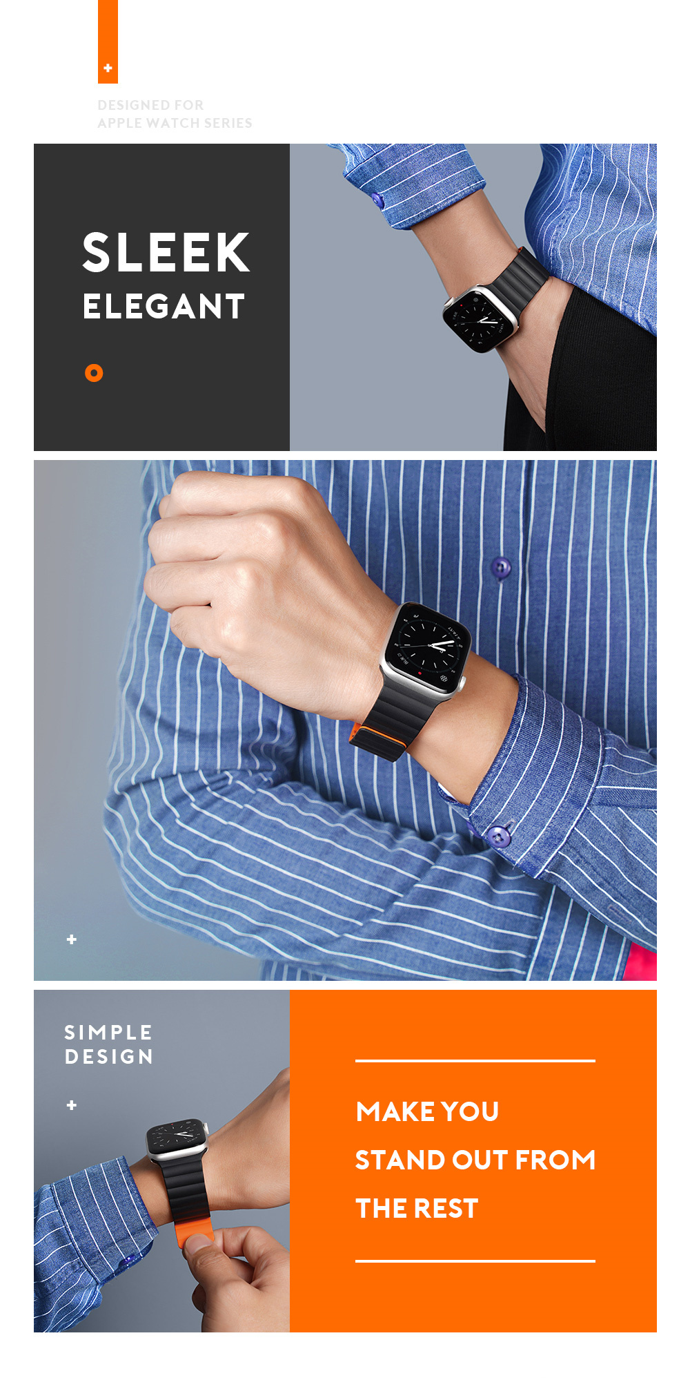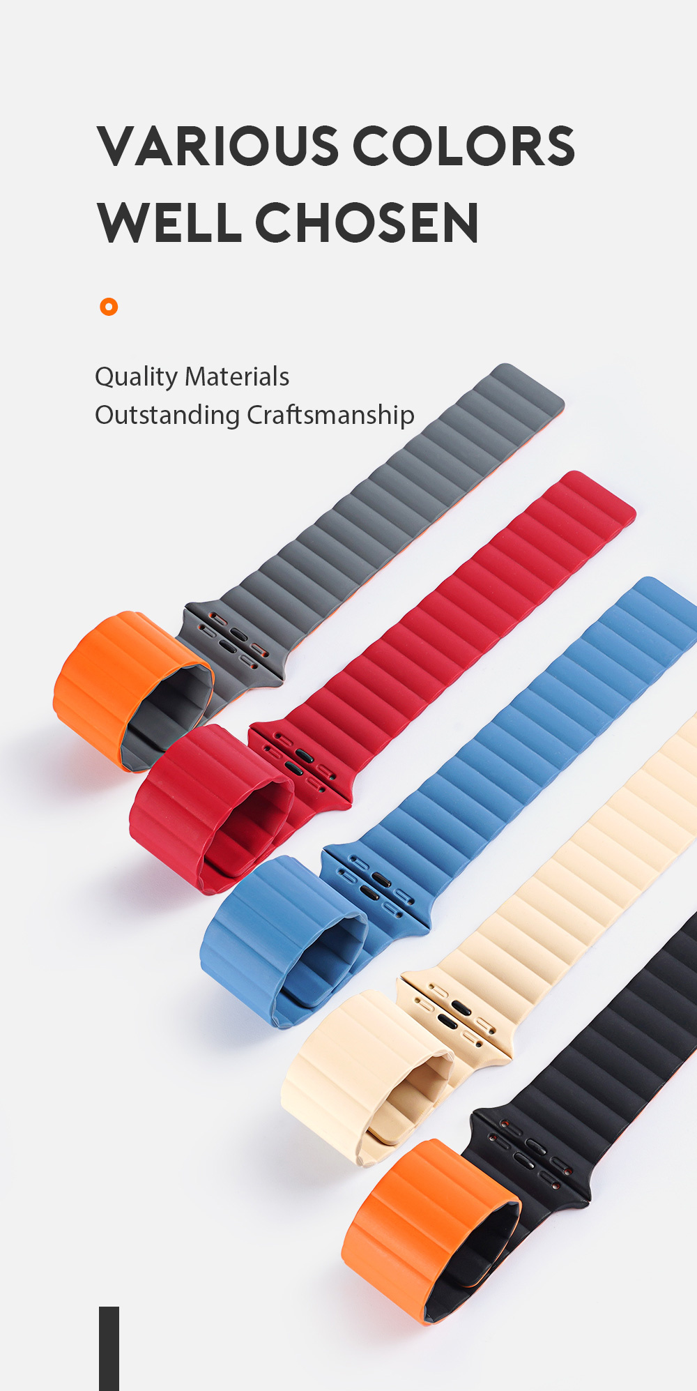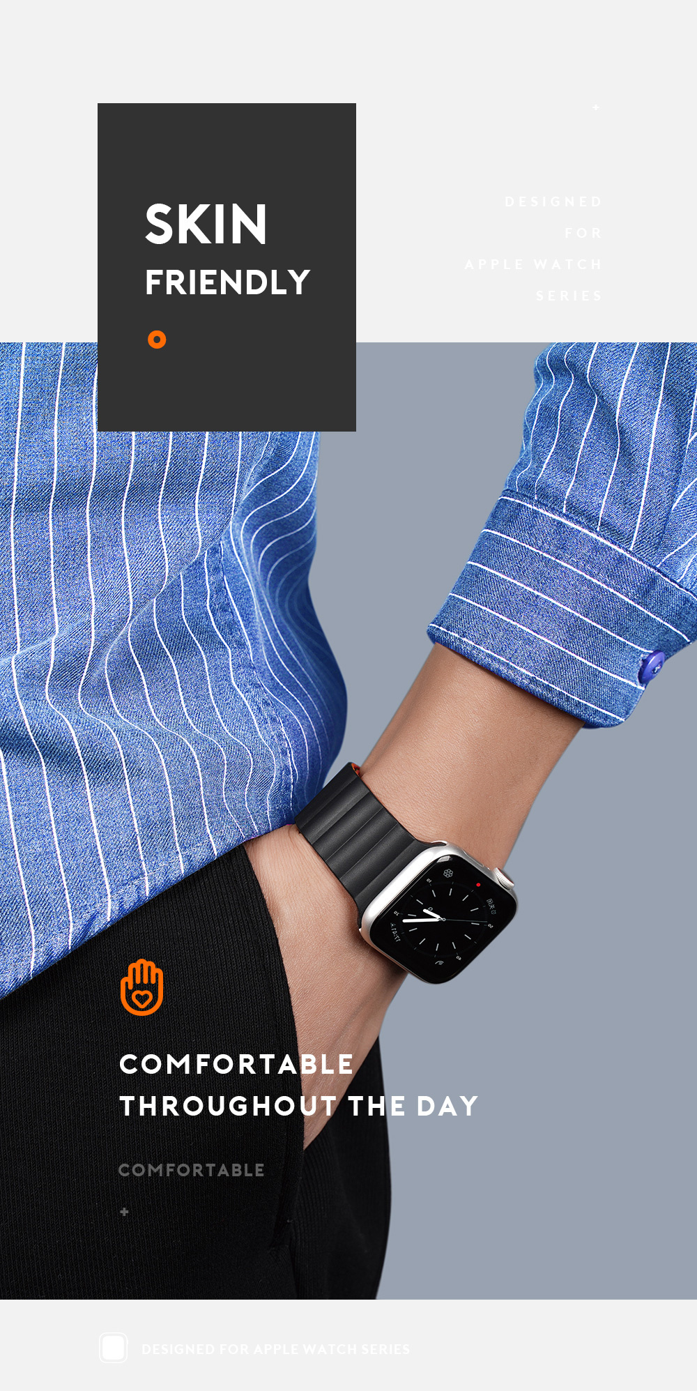 Magnetic, strong clasp allows it to perfectly adapt to the shape of the wrist, ensuring comfortable use. Magically wraps the wrist thanks to the magnets placed inside.