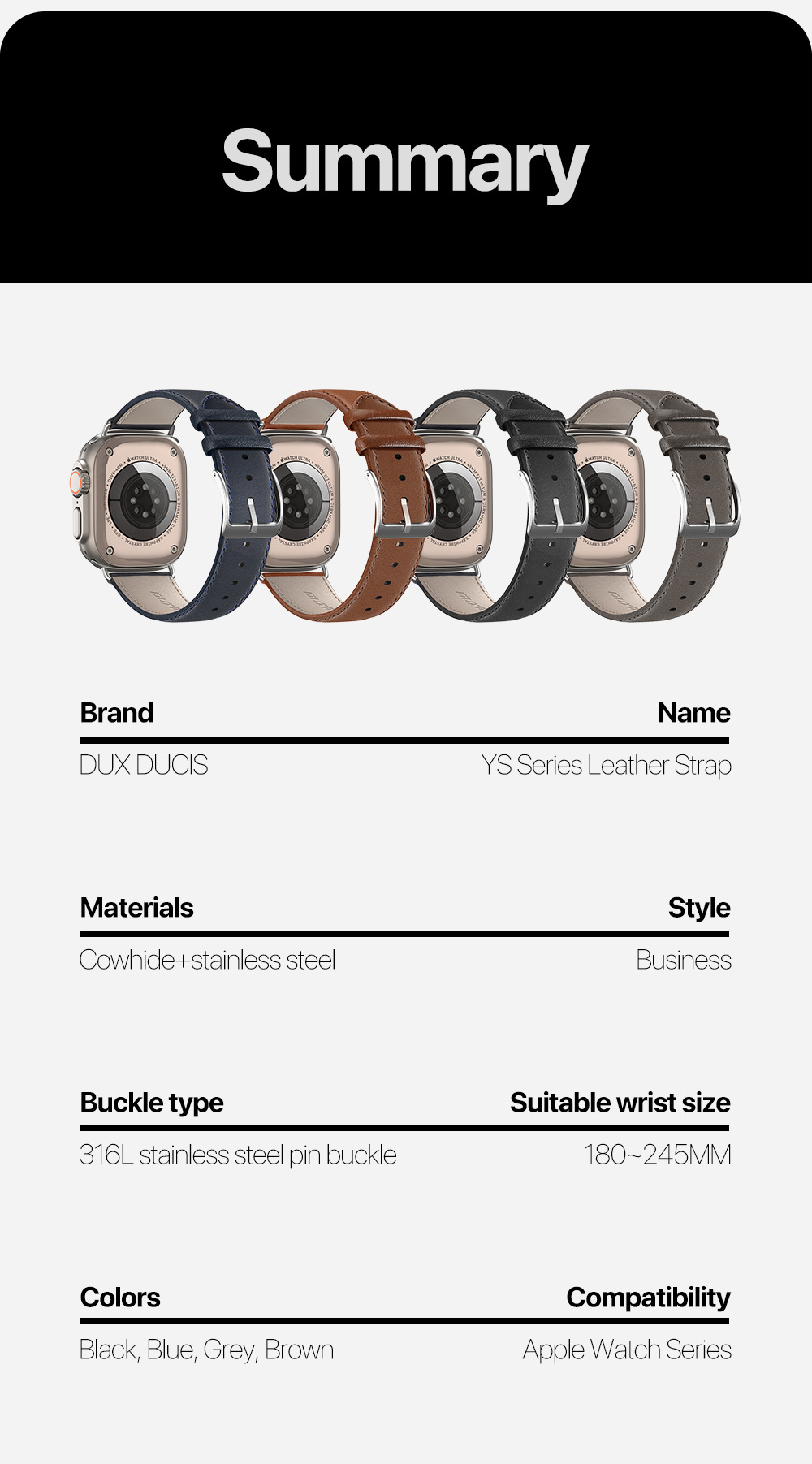 - Buckle material: Stainless steel