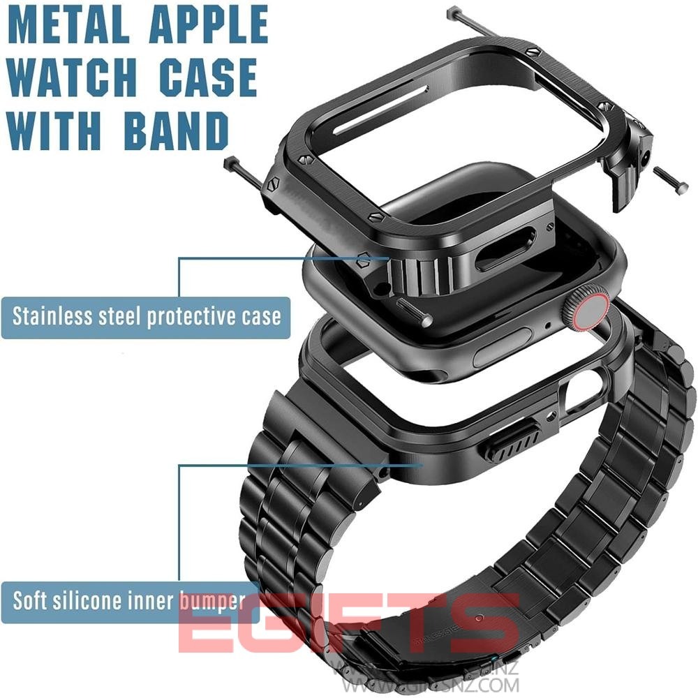 - 【Metal Case Protection】The one-piece band with case is made of high-quality 316 steel, which is strong, shock-proof and drop-proof. Enhanced comfort and durability, this band is skin-friendly and delicate. With a delicate steel connector, it won’t let your watch fall off easily. The stainless steel metal case bumper and tpu bumper lock your watch precisely and securely, protecting your iWatch from scratches.