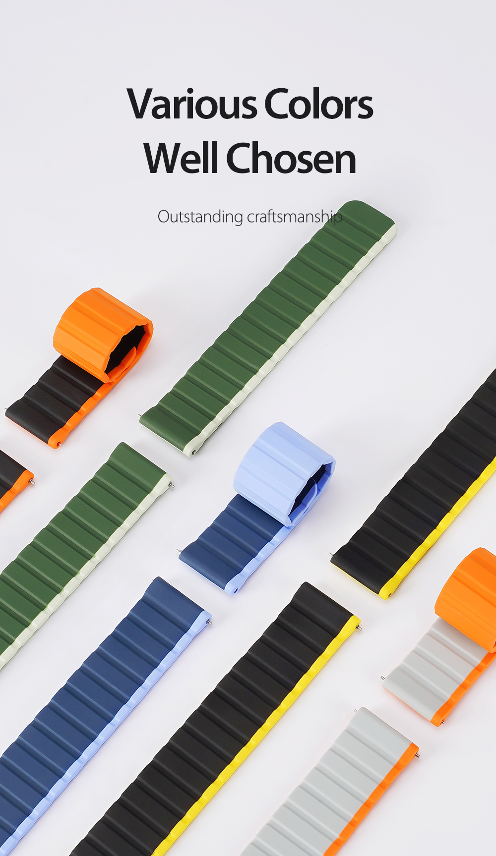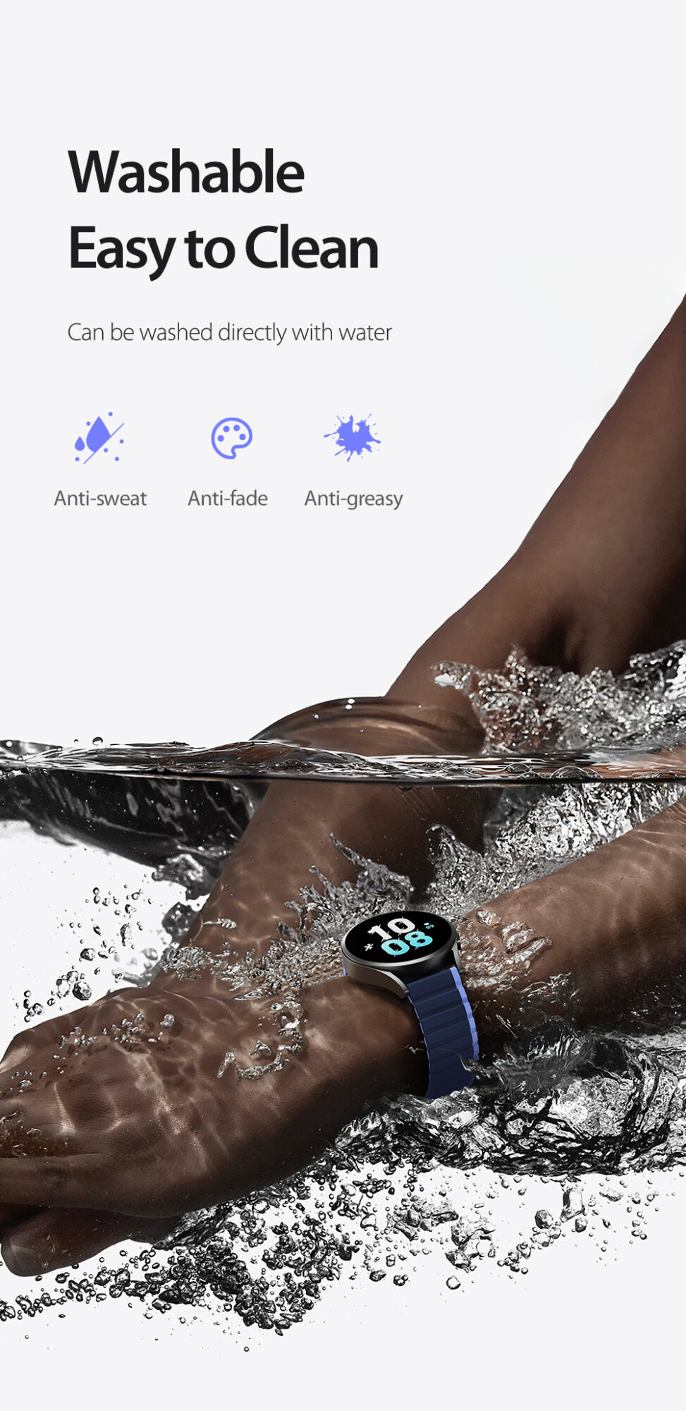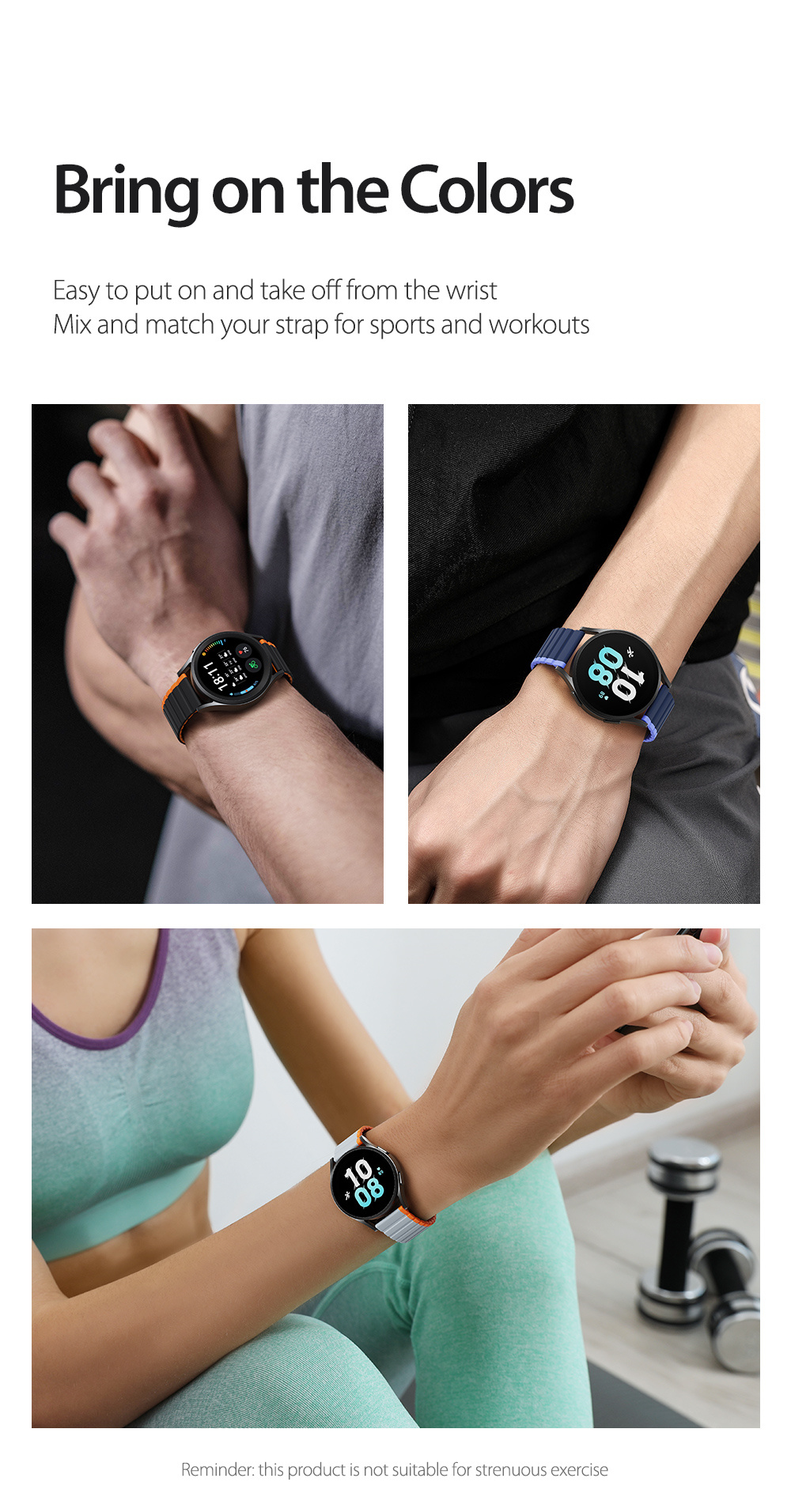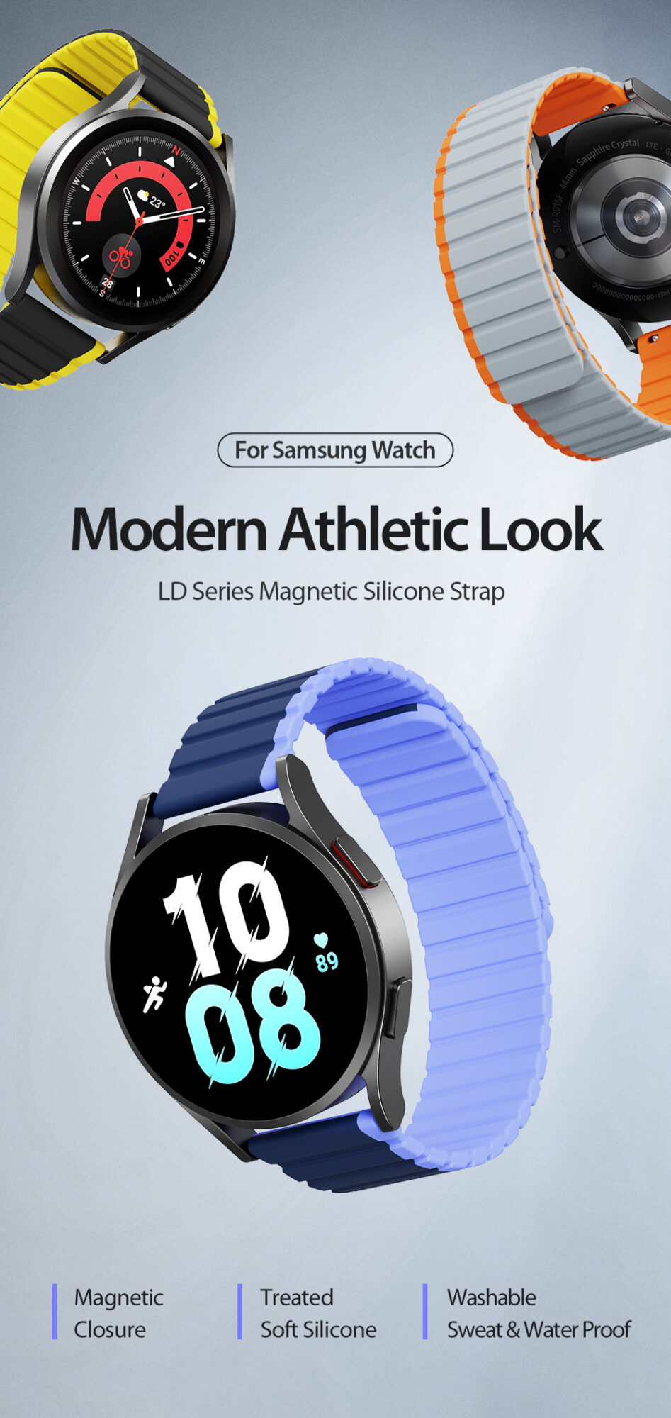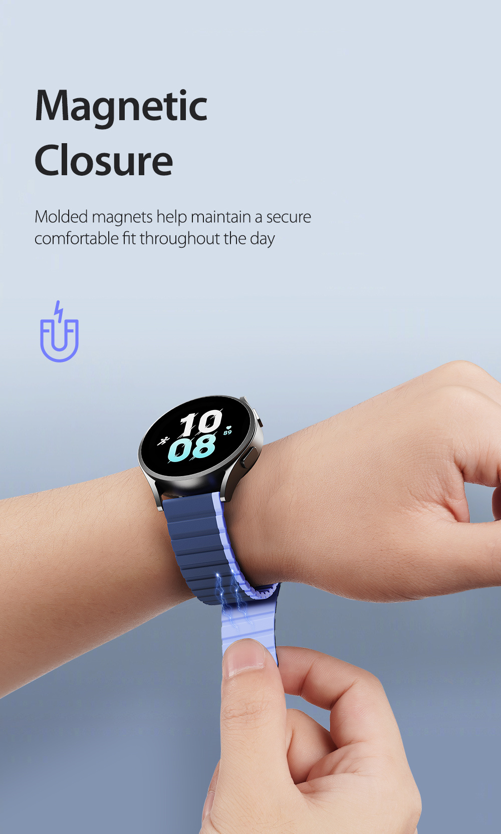 Made of treated soft silicone and magnetic closure for intense workouts and everyday wear.