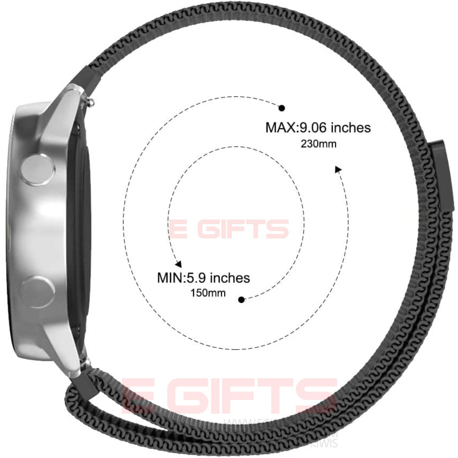 - 【ADJUSTABLE FREE SIZE】The Galaxy Watch 46mm stainless Steel Strap Fits For: 5. 7 inch to 8. 27 inch (145mm-210mm) wrist. Using the link removal tool to remove/add links by yourself to fit your wrist (contact us if you need extra links). the Galaxy Watch 46mm metal band fits for: 5. 7 inch to 11 inch (145mm-280mm) wrist.