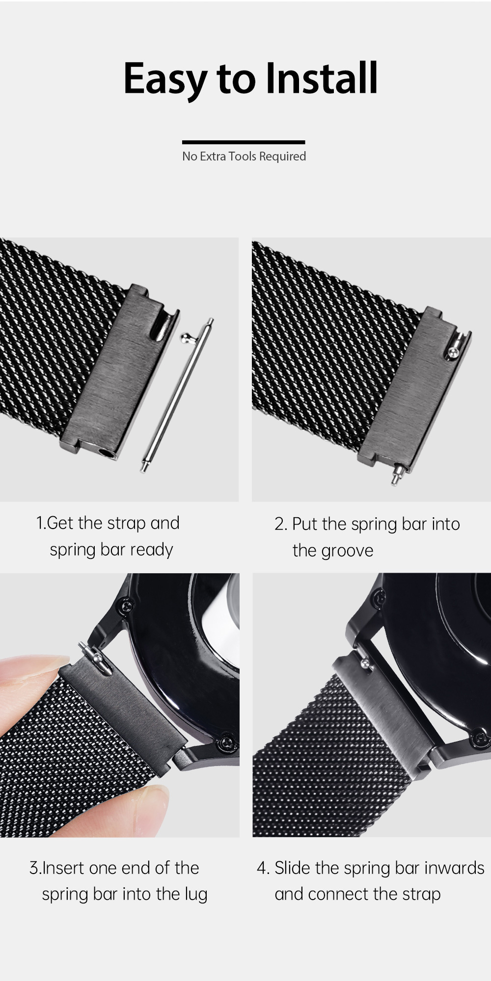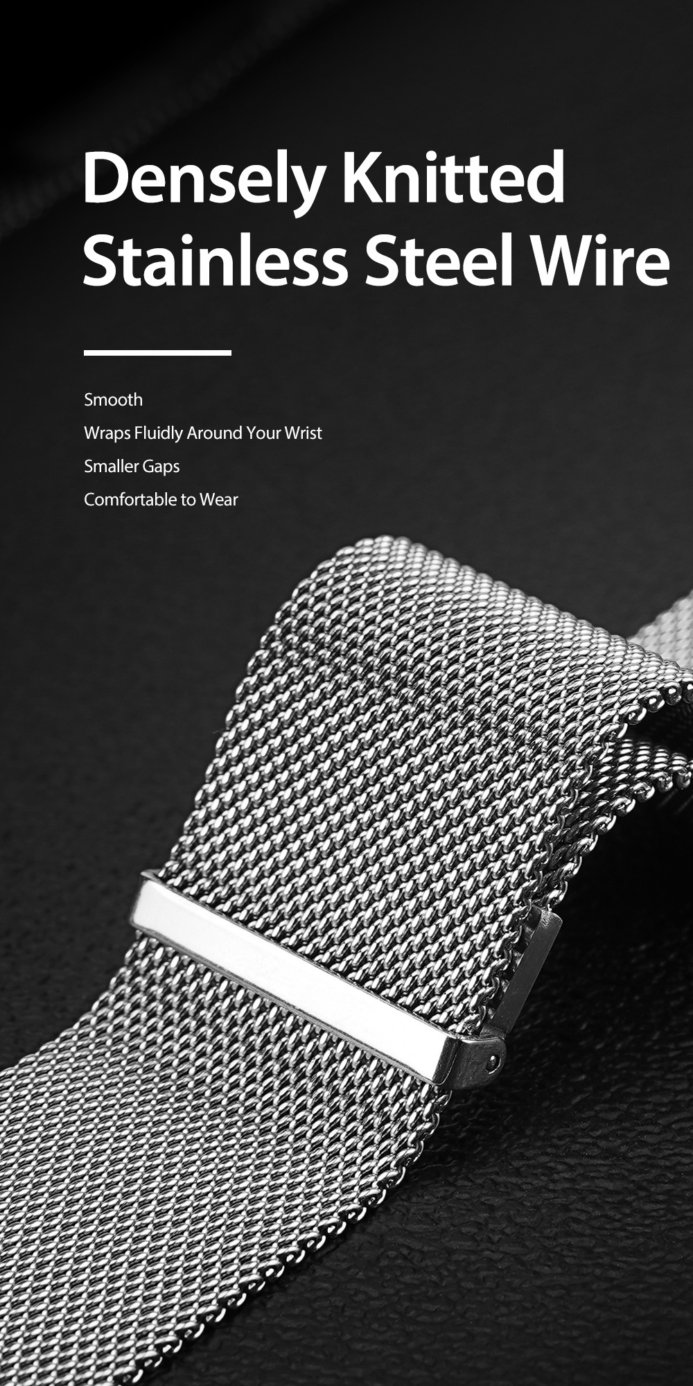 Woven on specialized machines, this stainless steel Milanese strap with adjustable magnetic closure will keep your watch wear safely and ensure a perfect fit. It is convenient for daily use, easy to install and remove, and fit most wrists size.