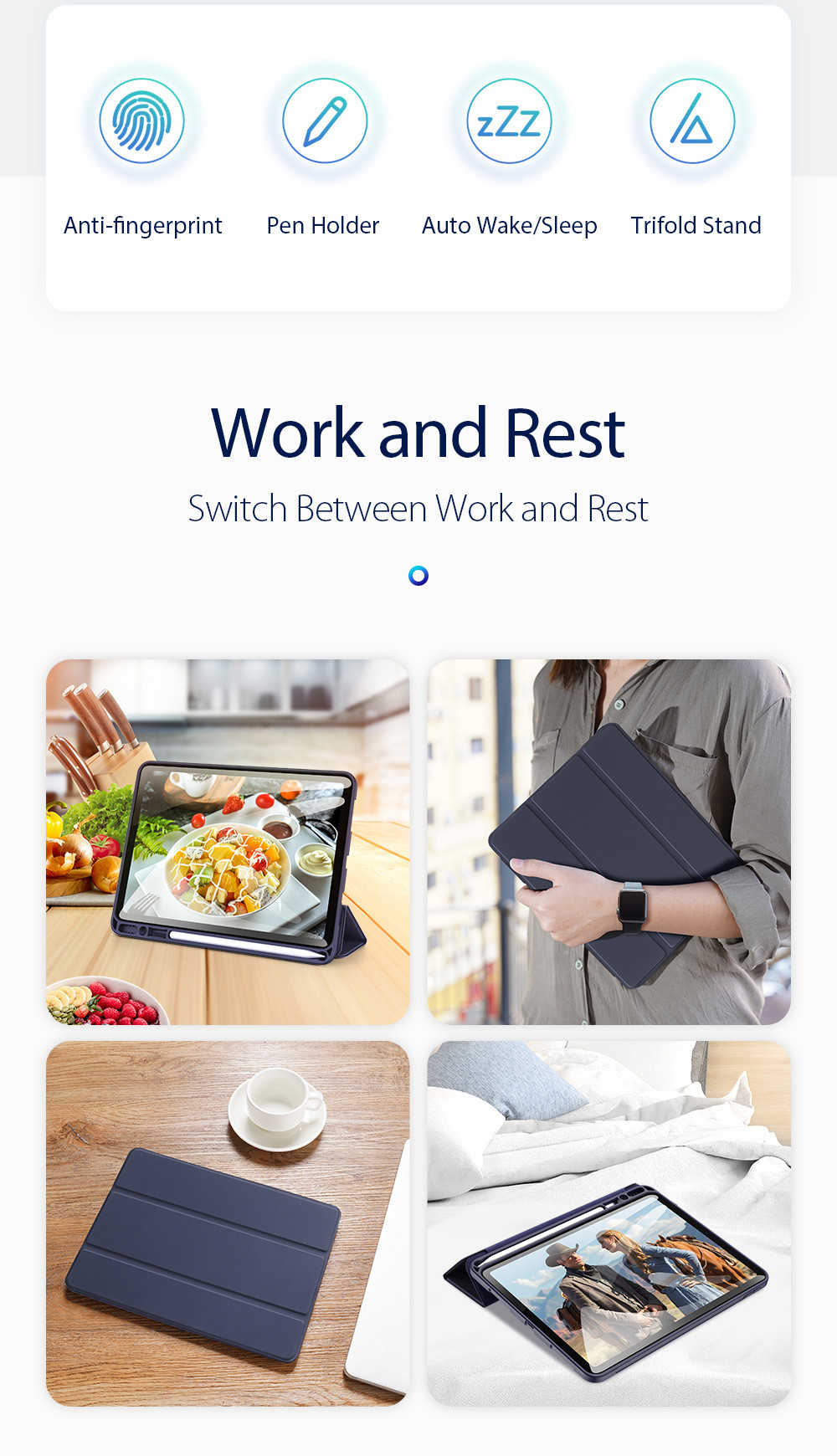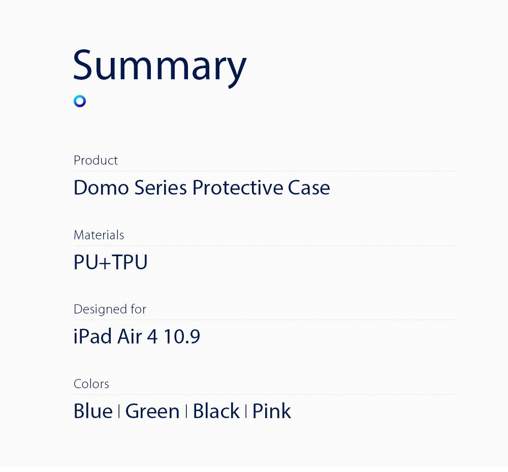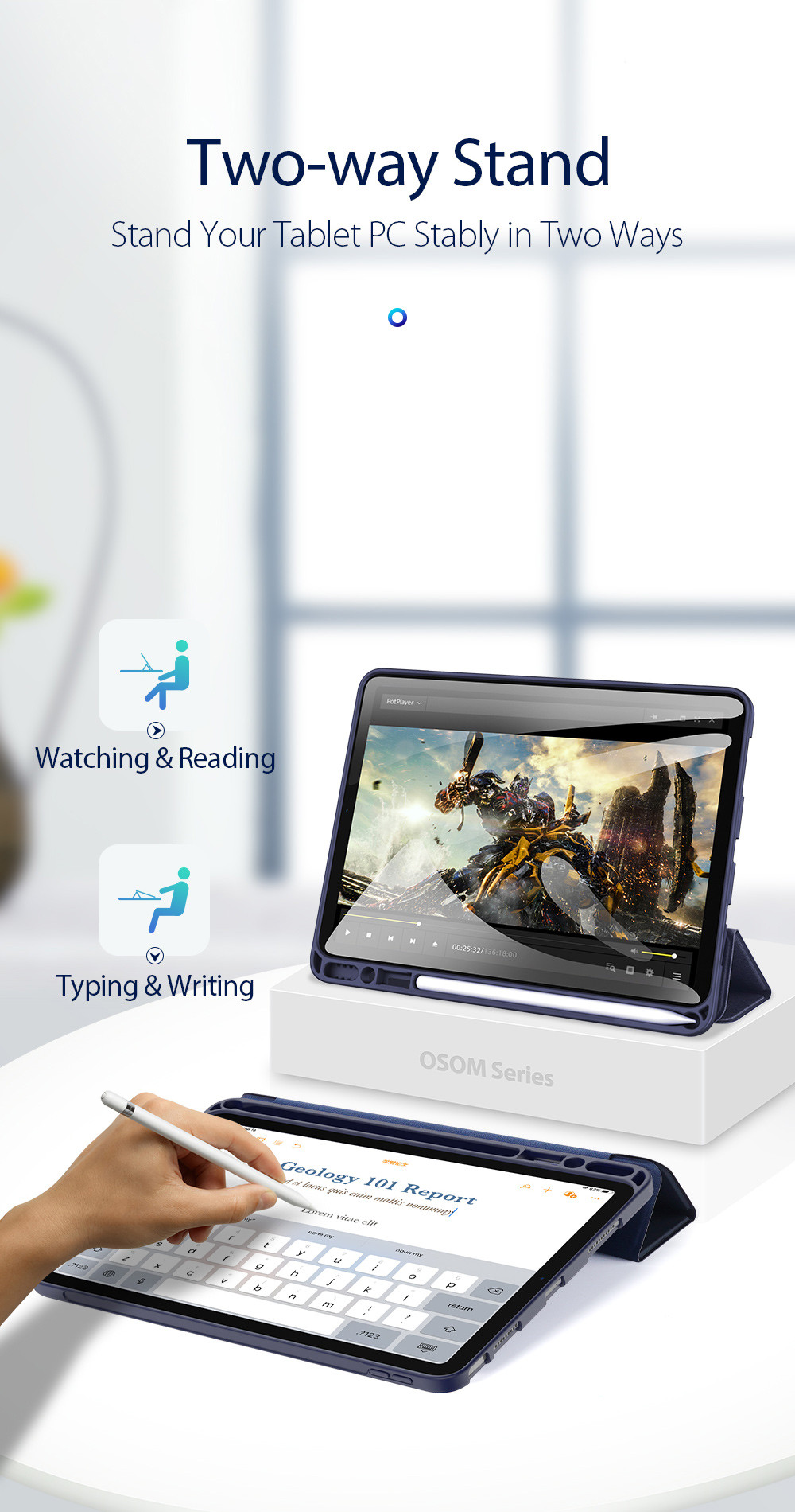 - Comes with wake/sleep function, raise the case, iPad wakes up; close the case, iPad sleeps.
