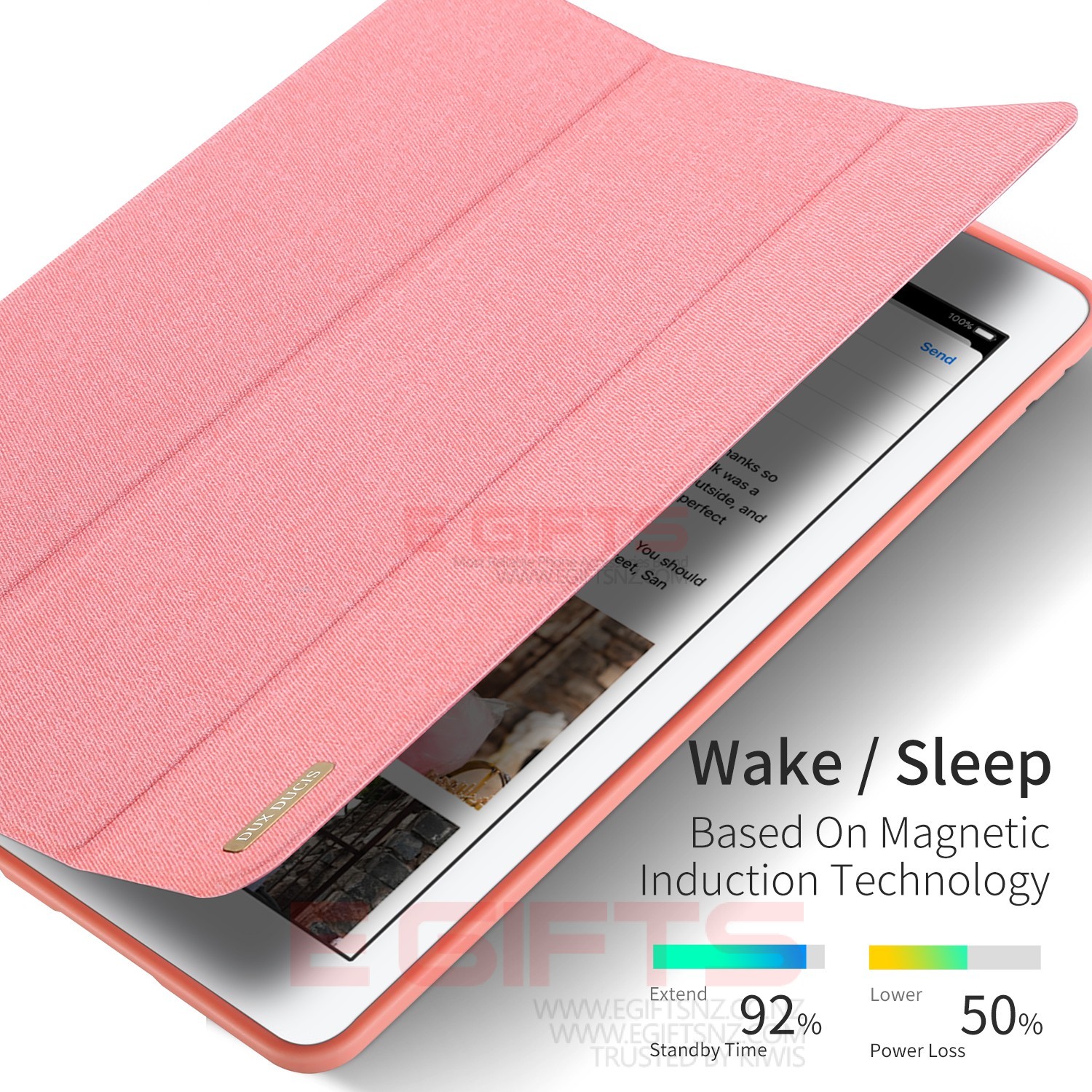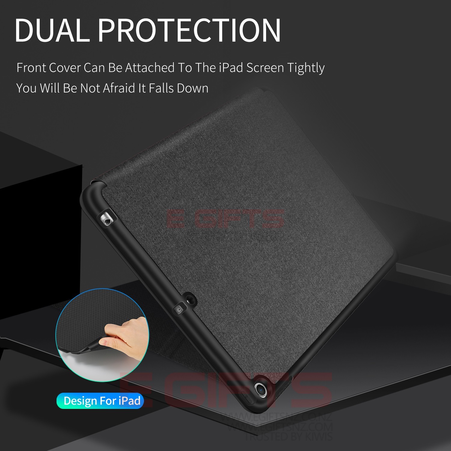 Comes with wake/sleep function, open the case, iPad wakes up; close the case, iPad sleeps.