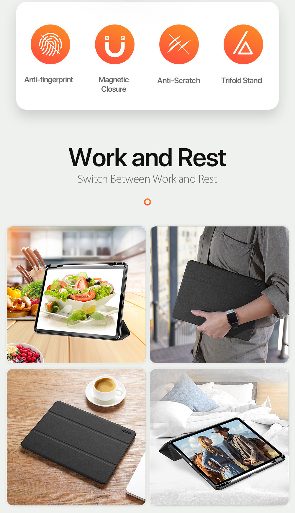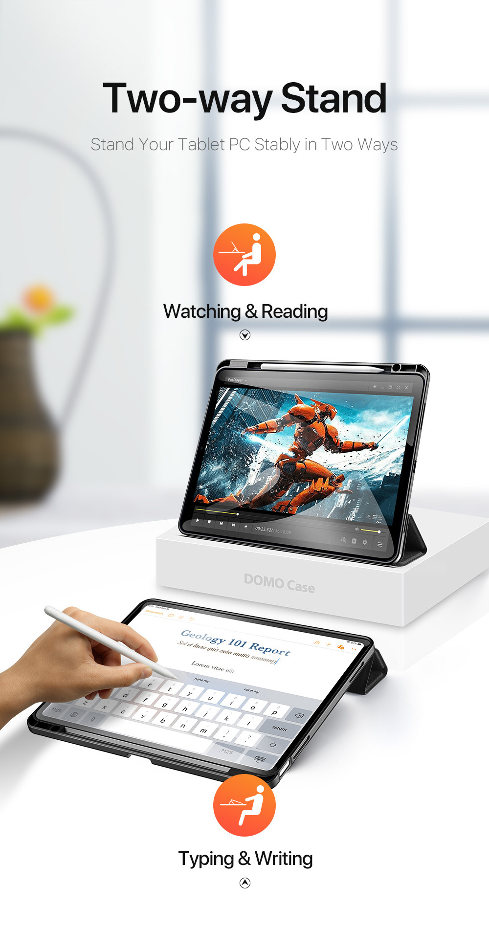 Comes with wake/sleep function, open the case, iPad wakes up; close the case, iPad sleeps.