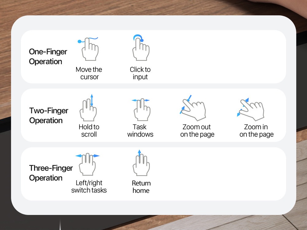 Multi-touch gestures (scroll, zoom, task-switch) for seamless productivity;