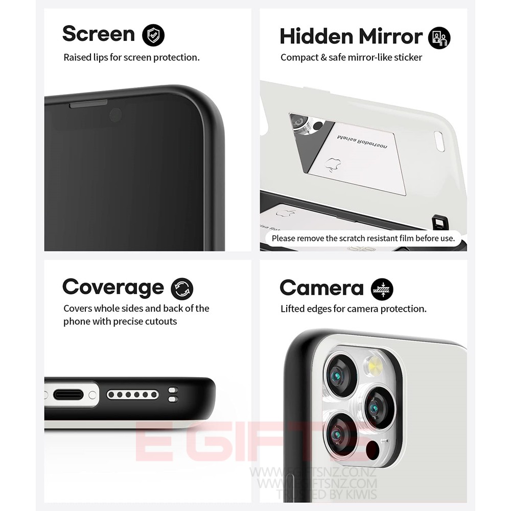 • [Card Holder] Dedicate to all card carrying folk. The card storage part is designed with a curve, so you can store 2 cards from bottom to top more easily. In addition, attachable hidden mirror inside is designed specially for quick etiquette checks. (Please remove the scratch resistant film before use.) Getting ready to go out is easier than ever.