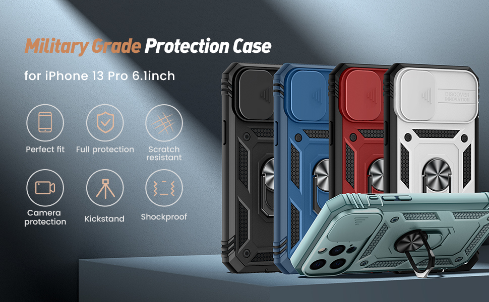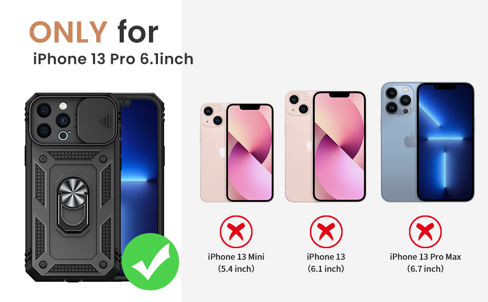 - 【Military-Grade Protection】Designed for iphone 13 Pro [6.1 inch], perfect fit and easy access to all ports, buttons, speaker and camera. Soft TPU and hard PC material to protect your phone from drops, scratches and bumps