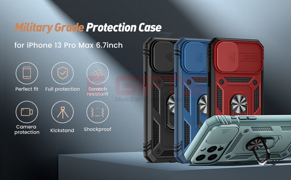 - 【Military-Grade Protection】Designed for iphone 13 Pro Max [6.7 inch], perfect fit and easy access to all ports, buttons, speaker and camera. Soft TPU and hard PC material to protect your phone from drops, scratches and bumps