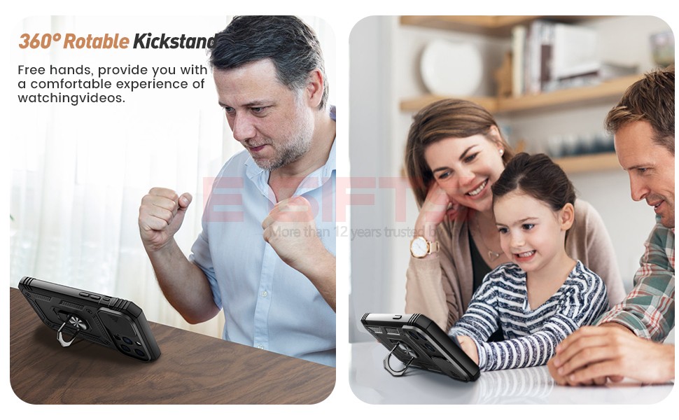 - 【Rotable Kickstand Design】Metal kickstand ring can rotate 360°, rotated smoothly with a preset position to lock it, free hands, which provide you with a comfortable experience of watching videos and movies.