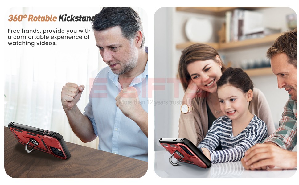 • 【Rotable Kickstand Design】Metal kickstand ring can rotate 360°, rotated smoothly with a preset position to lock it, free hands, which provide you with a comfortable experience of watching videos and movies.
