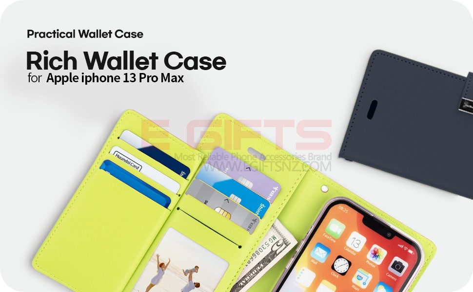- [Stylish yet Functional] Made of premium Soft PU leather and magnetic closure with chrome coated embellishment, slim and sleek design adds modern look. It is constructed with 6 card slots, 1 ID/photo slot & 1 side pocket inside the case and PU leather magnetic closure for easy to use. (The magnet does NOT affect the reception signal or any functions of the device.) Make your iPhone 13 practical in style.