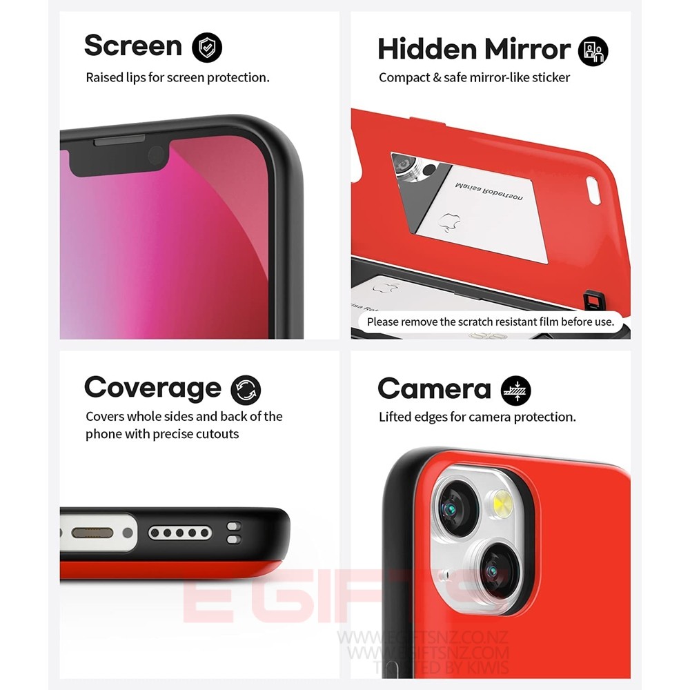 - [Card Holder] Dedicate to all card carrying folk. The card storage part is designed with a curve, so you can store 2 cards from bottom to top more easily. In addition, attachable hidden mirror inside is designed specially for quick etiquette checks. (Please remove the scratch resistant film before use.) Getting ready to go out is easier than ever.
