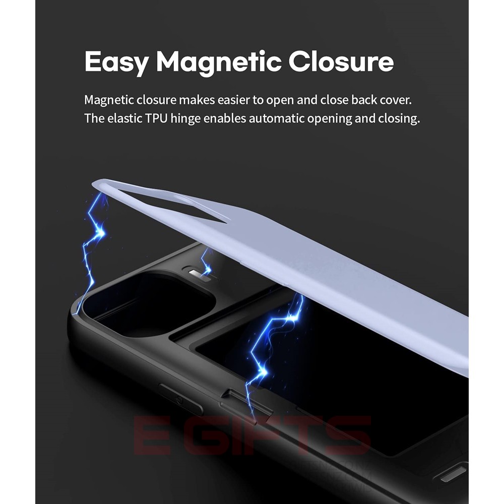 - [Magnetic Door] Magnetic closure makes easier to open and close back cover. If you use your card to hold back cover as a stand, you can enjoy video watching and games.