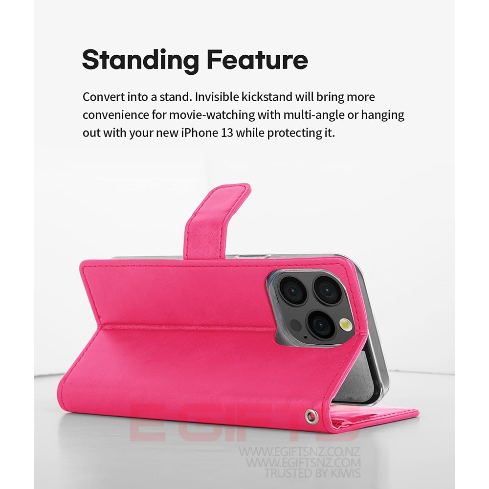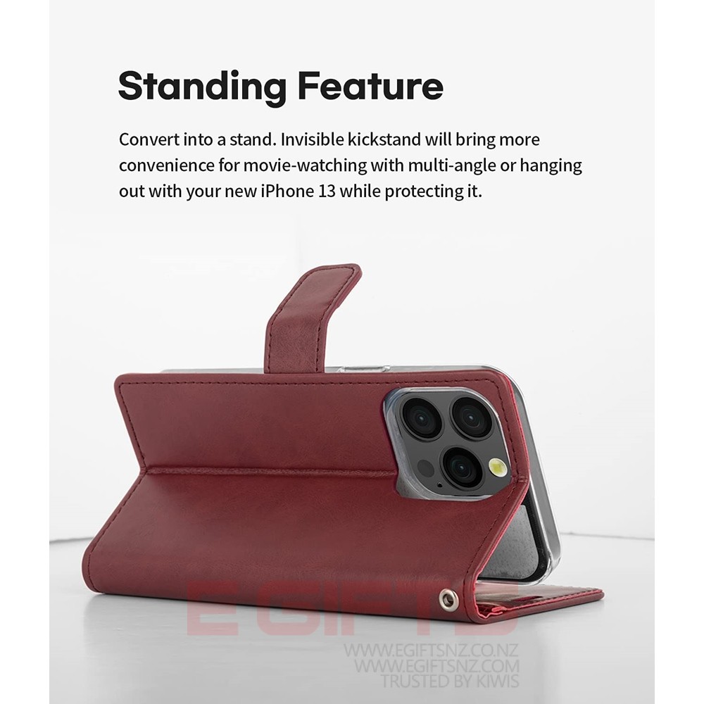 - [Stylish yet Functional] Made of premium PU leather, slim and sleek design adds classic look. It is constructed with 3 card slots & 1 side pocket inside the case and magnetic closure for easy to use. (The magnet does NOT affect the reception signal or any functions of the device.) Make your iPhone practical in style.