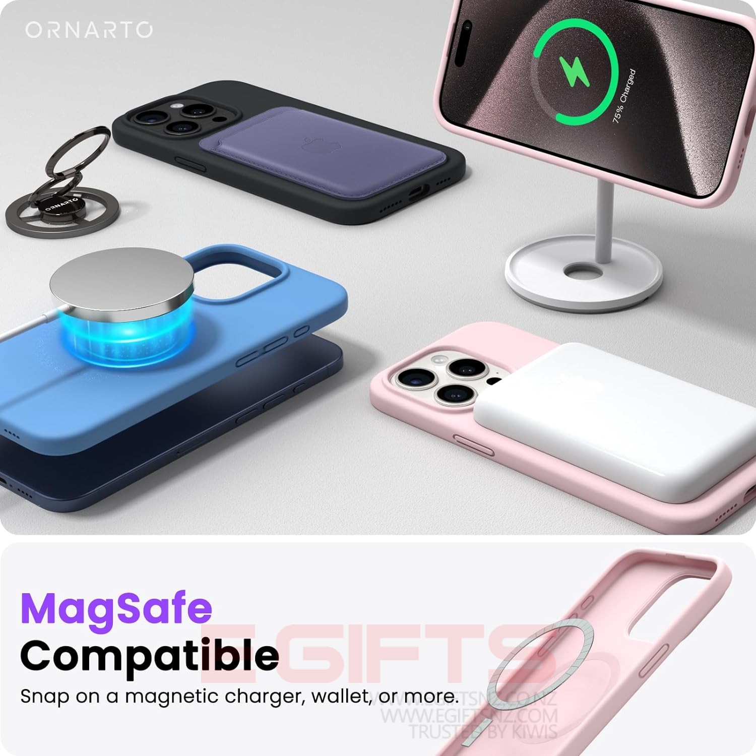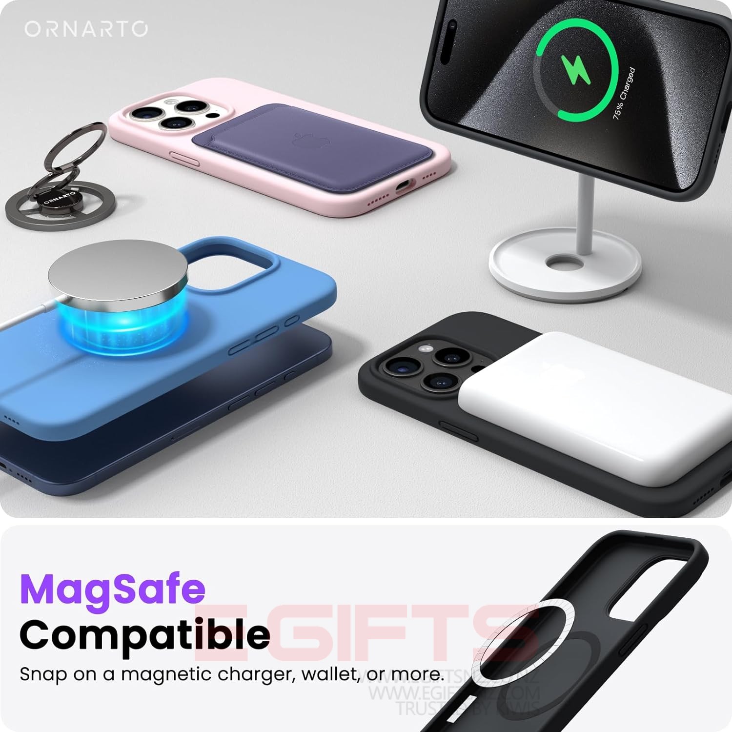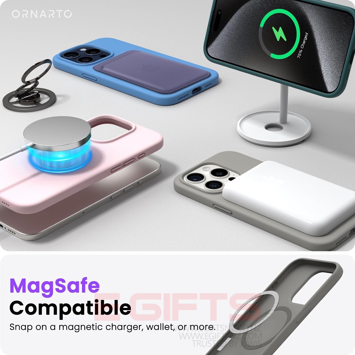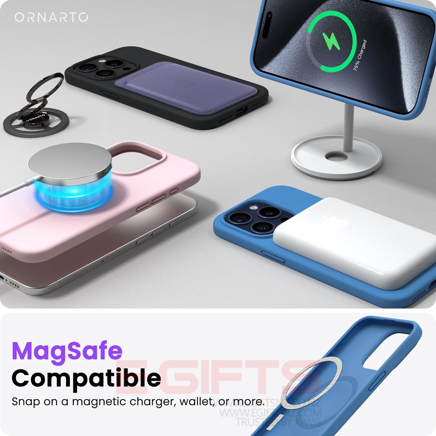 ✔【Strong Magnets】 The iPhone case is compatible with MagSafe wireless charger (NOT Included). Built-in 36+2 magnets automatically aligned with wireless charger. It has stronger magnetic adsorption force without signal interference.
