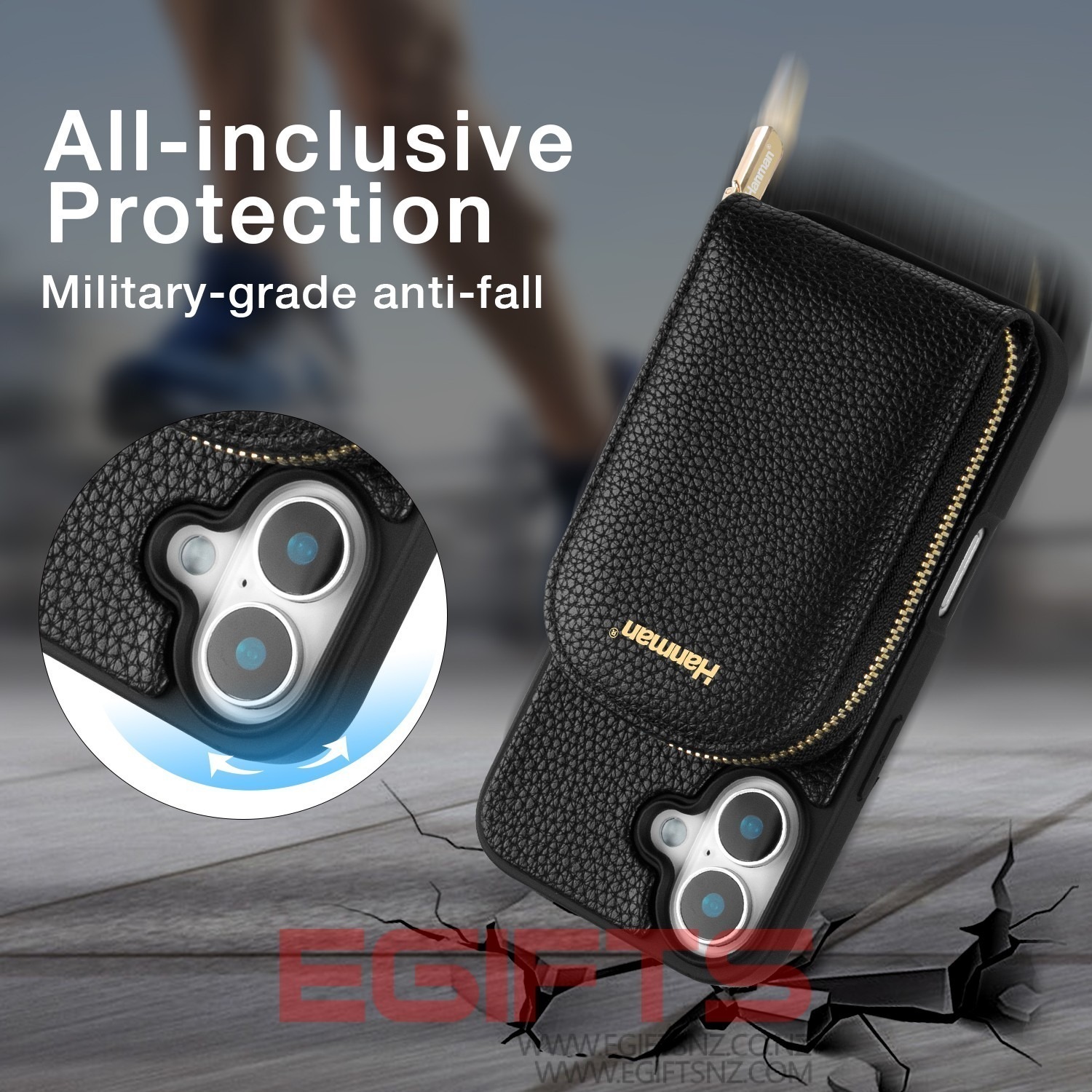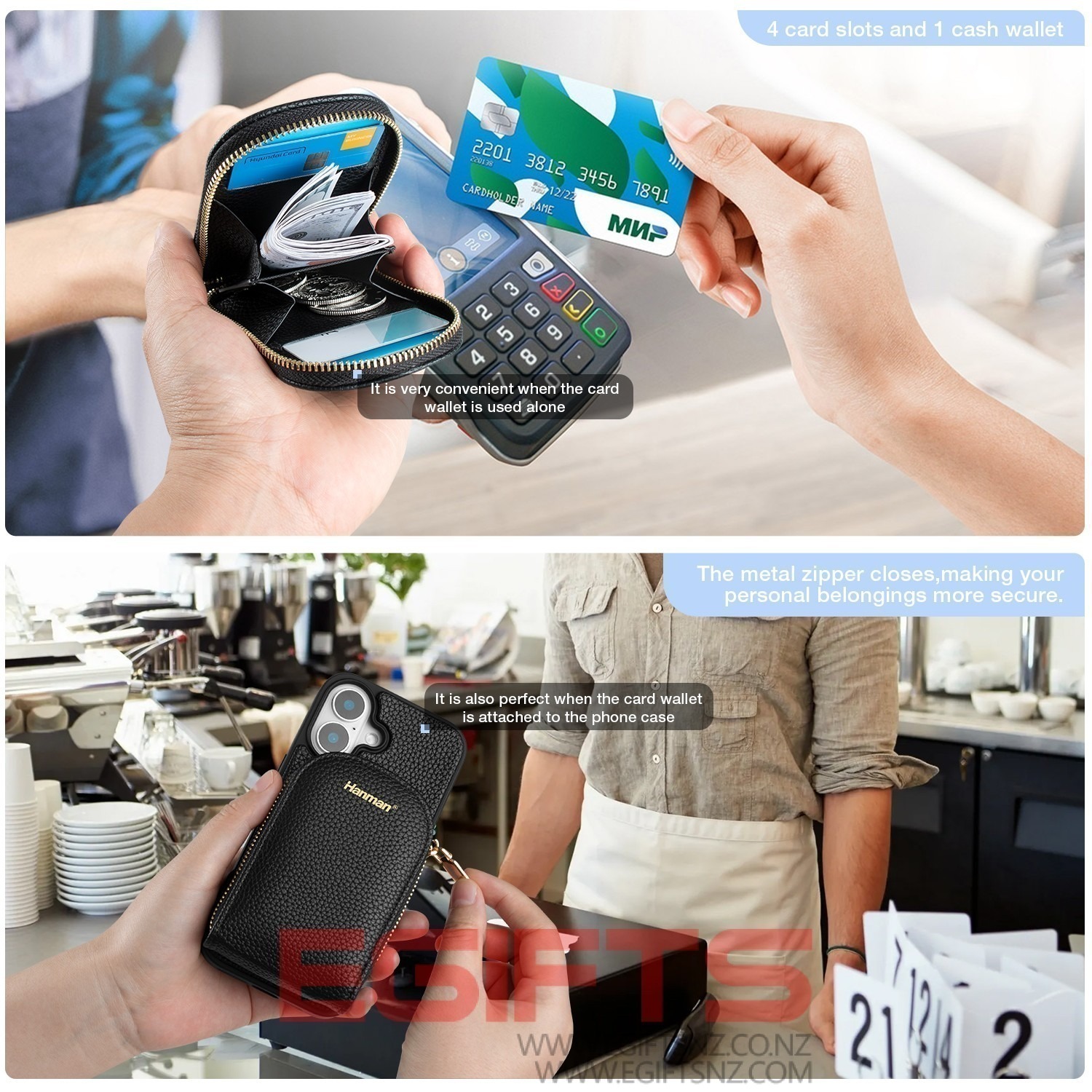 - Large Capacity Wallet Case:Hanman foriPhone 17 Pro case wallet is equipped with 4 card slots as well as 2 cash pocket for the storage of little money and various cards such as ID card,debit card,driver’s license,and so on.What’s more,smooth zipper closure on the cross body case wallet can ensure the safety of your belongings
