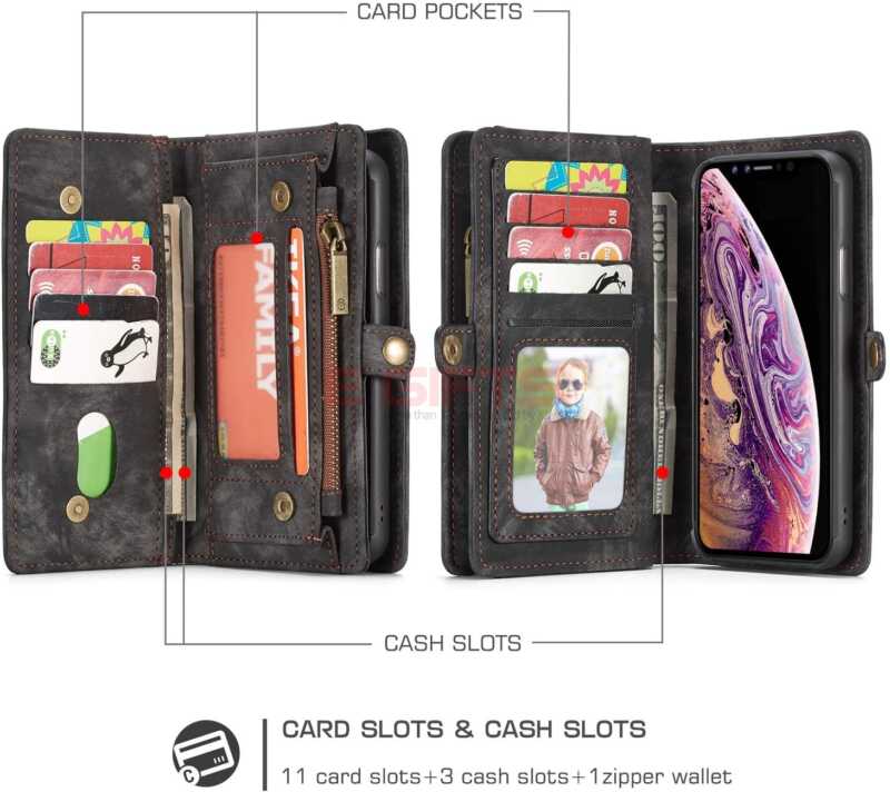 Feature: 11 Card Slots multi function wallet with detachable back cover