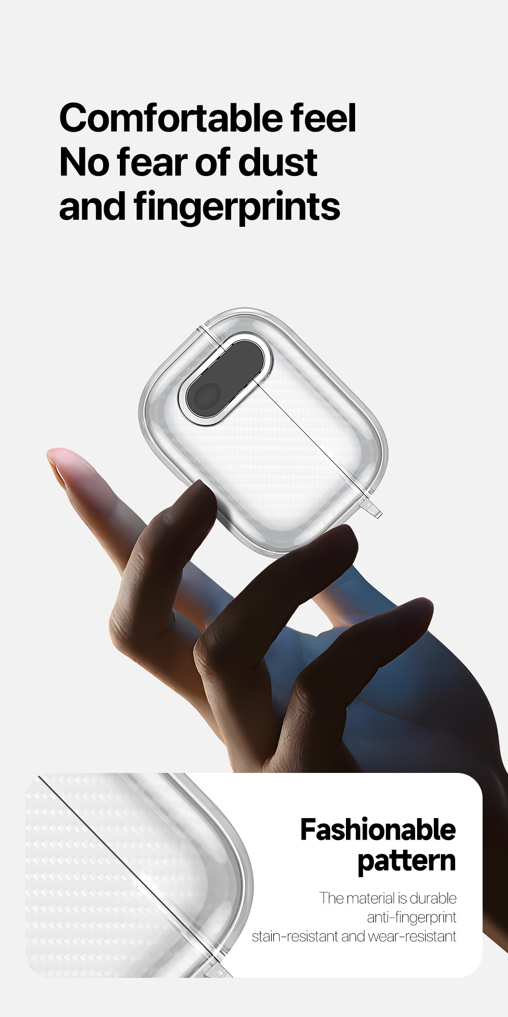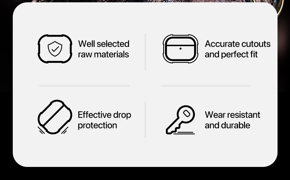 It’s made of TPU+PC which are durable materials that resist sweat and fingerprints and feel good to the touch. It can provide full protection to your AirPods box againest scratches, drops and bumps.