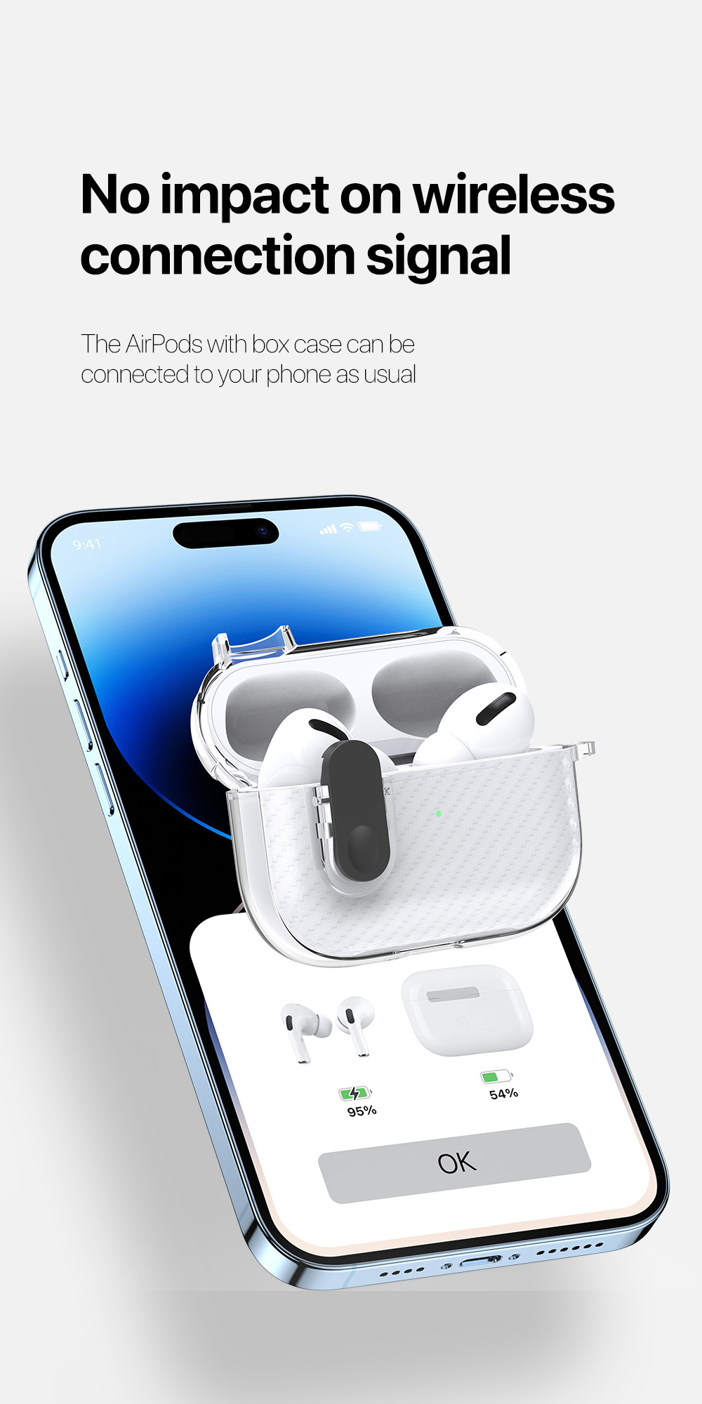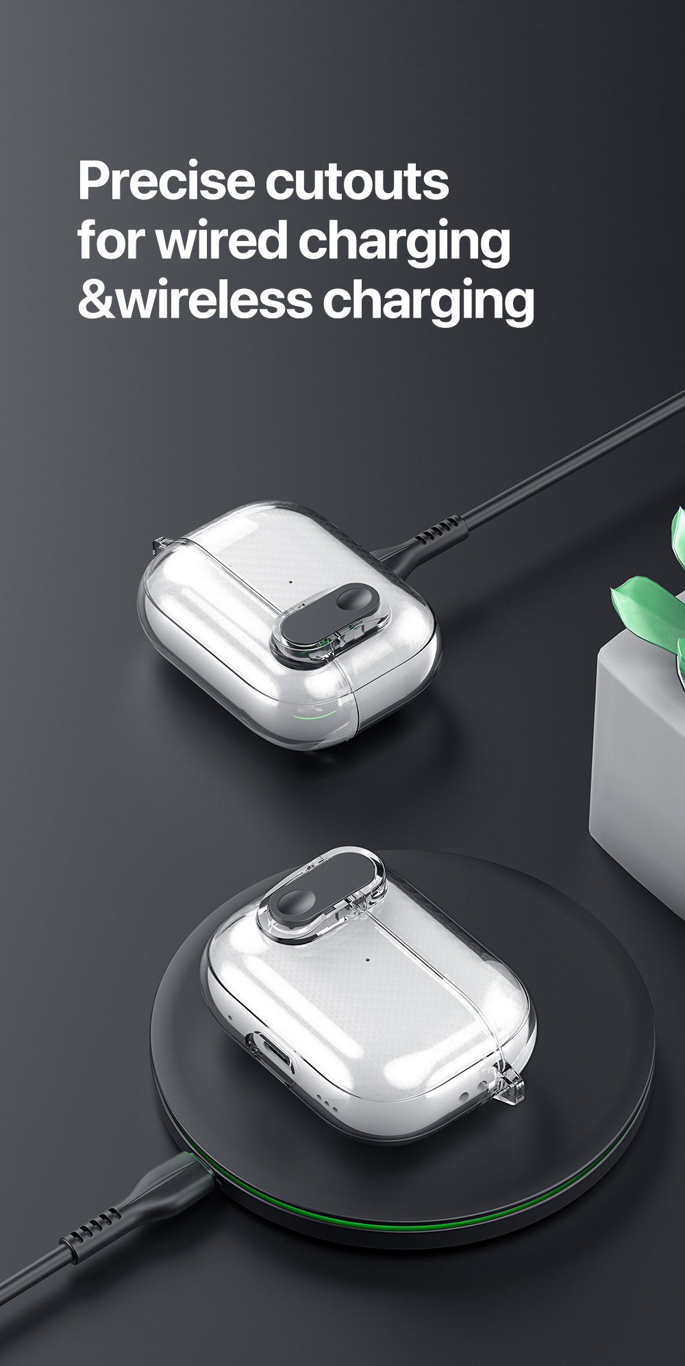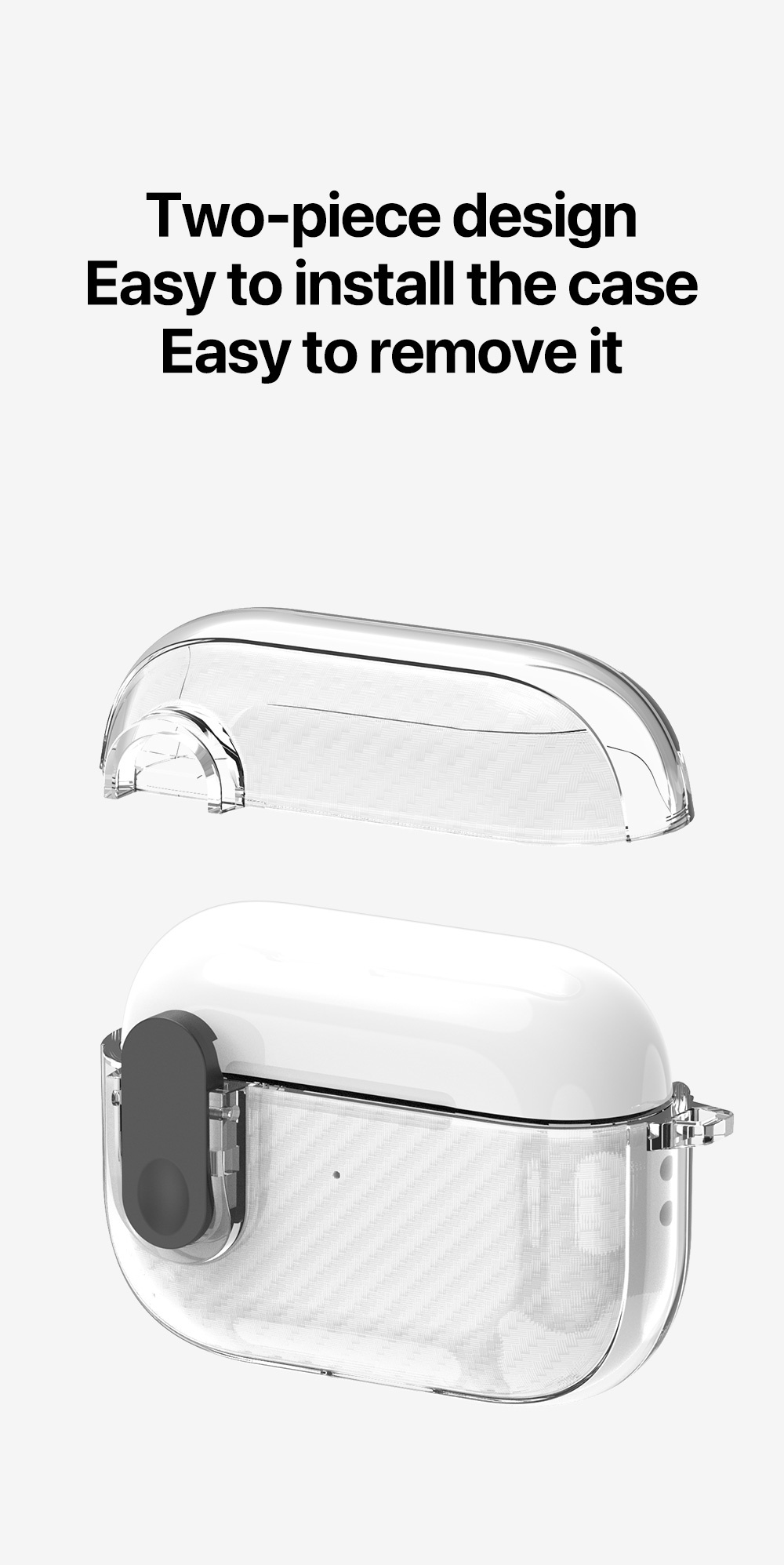 It consists of two parts, lid and body, so it is very convenient for you to installed or remove the case. You can open the box with case as usual to easily take out the AirPods.