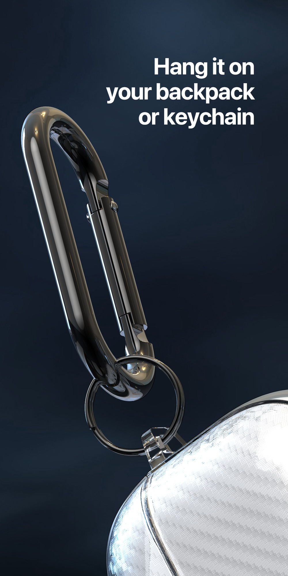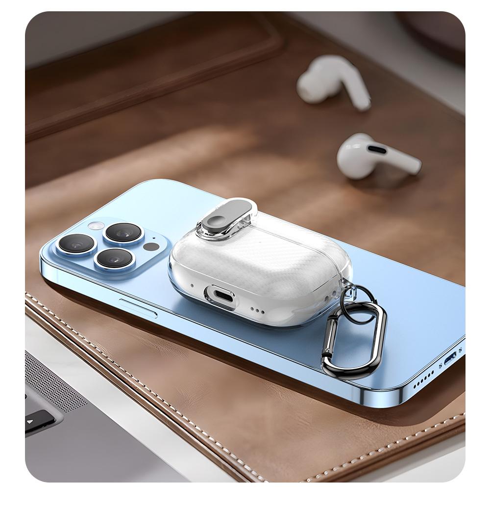 With the hook, you may hang your AirPods on your backpack, keychain or even belt, so that you can take it out and use it anytime and anywhere.