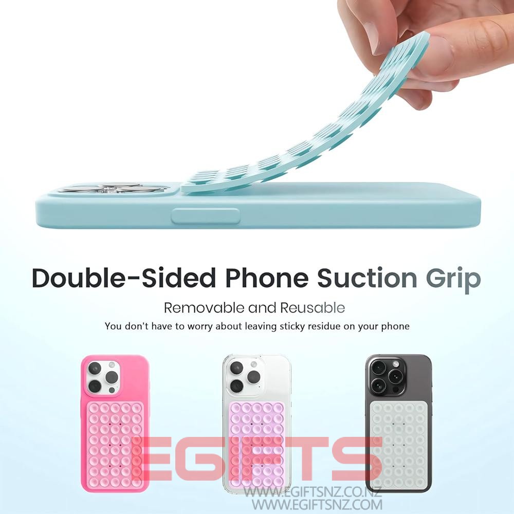 - Reusable & Residue-Free: Unlike single-sided suction cups permanently attached to phone cases, this one features 28 suction cups per side (no adhesive), ensuring a reusable and residue-free connection. You won’t have to worry about sticky residue transferring from your phone to your fingers. Easily remove and reposition between car windshields, gym equipment, and windows.